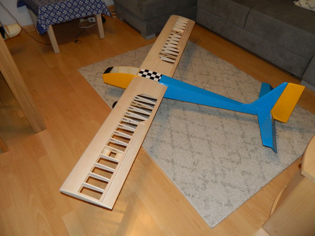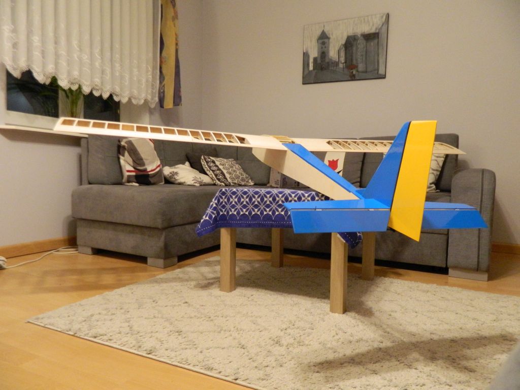 Z różnych przyczyn, jest obsuwa w planie :( . Zapowiadany oblot do końca października nie udał się. Małymi kroczkami budowa Tukana zmierza do finału. Zasadniczo wszystko jest zrobione ;) ..... hmmm, jeszcze folia, wyposażenie i jakaś drobna kosmetyka. Ostatnie dwa dni męczyłem się z oklejaniem ogonka modelu, bardzo to mozolne było i upierdliwe, z powodu tego, że wszystko jest już zamocowane na stałe, no oprócz sterów oczywiście. Zasadnicza kolorystyka jasnoniebiesko-żółta. Dojdą jakieś drobne elementy z innych kolorów, paseczki, emblematy i napisiki eksploatacyjne :) , ale ogólnie będzie w takich barwach.