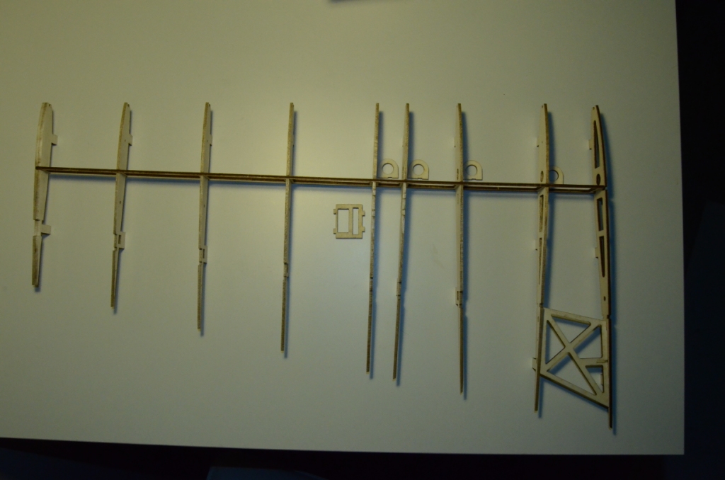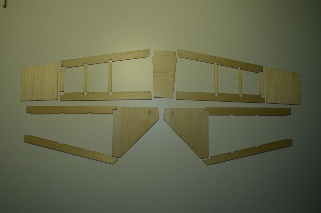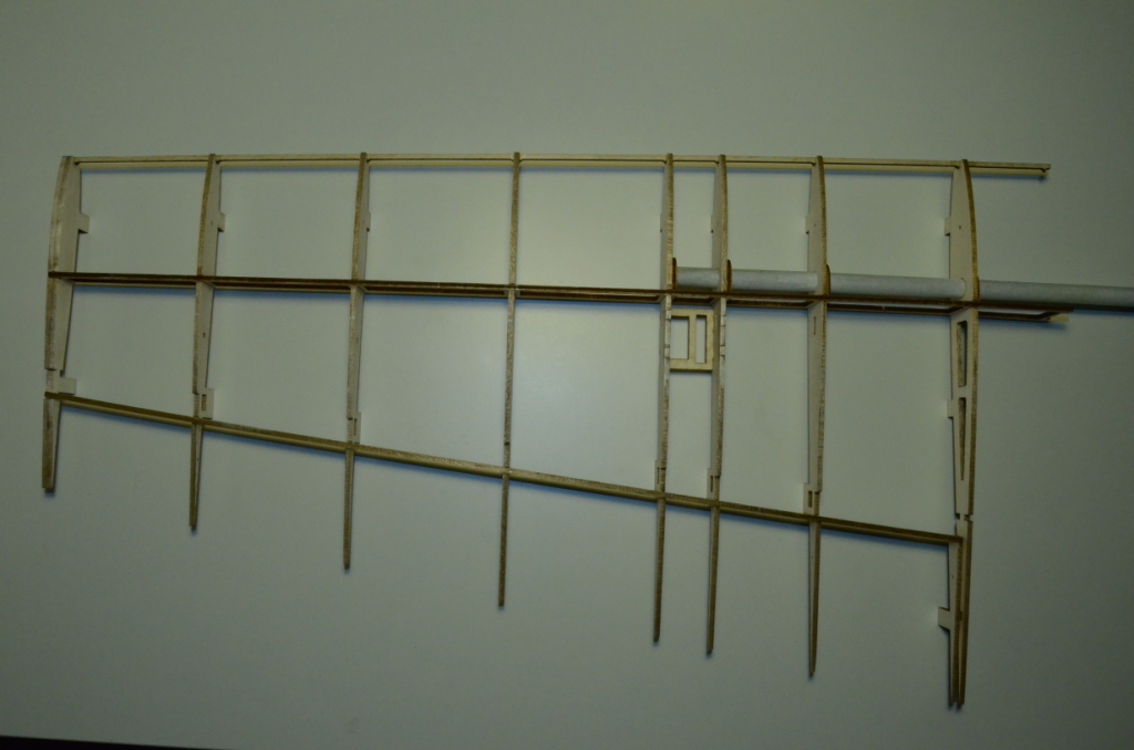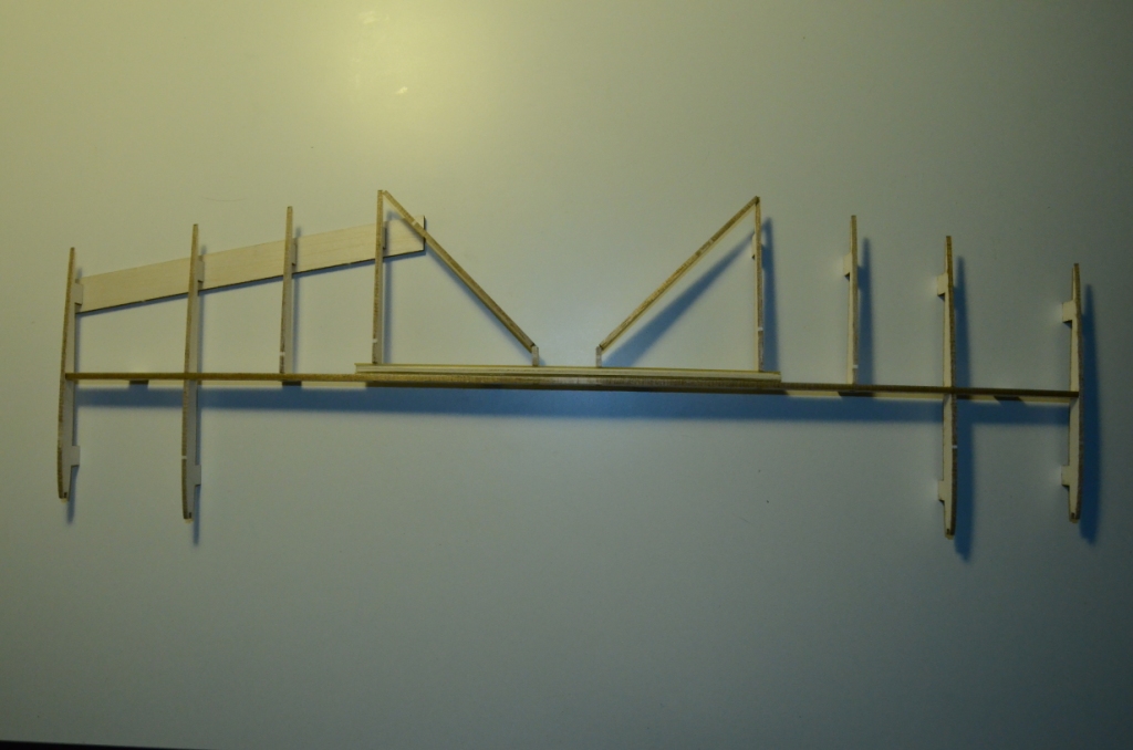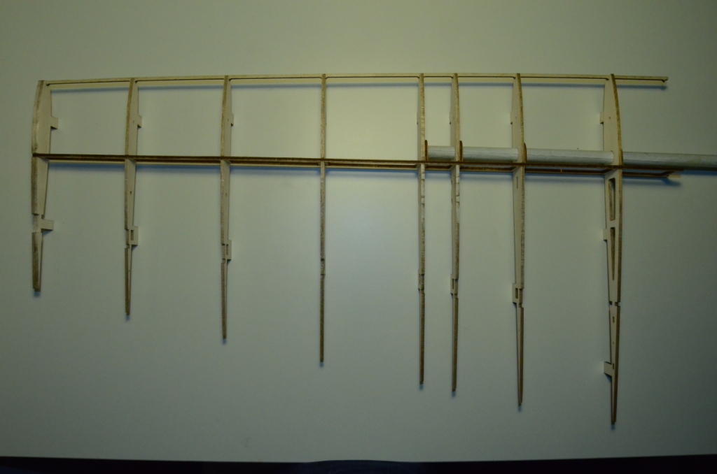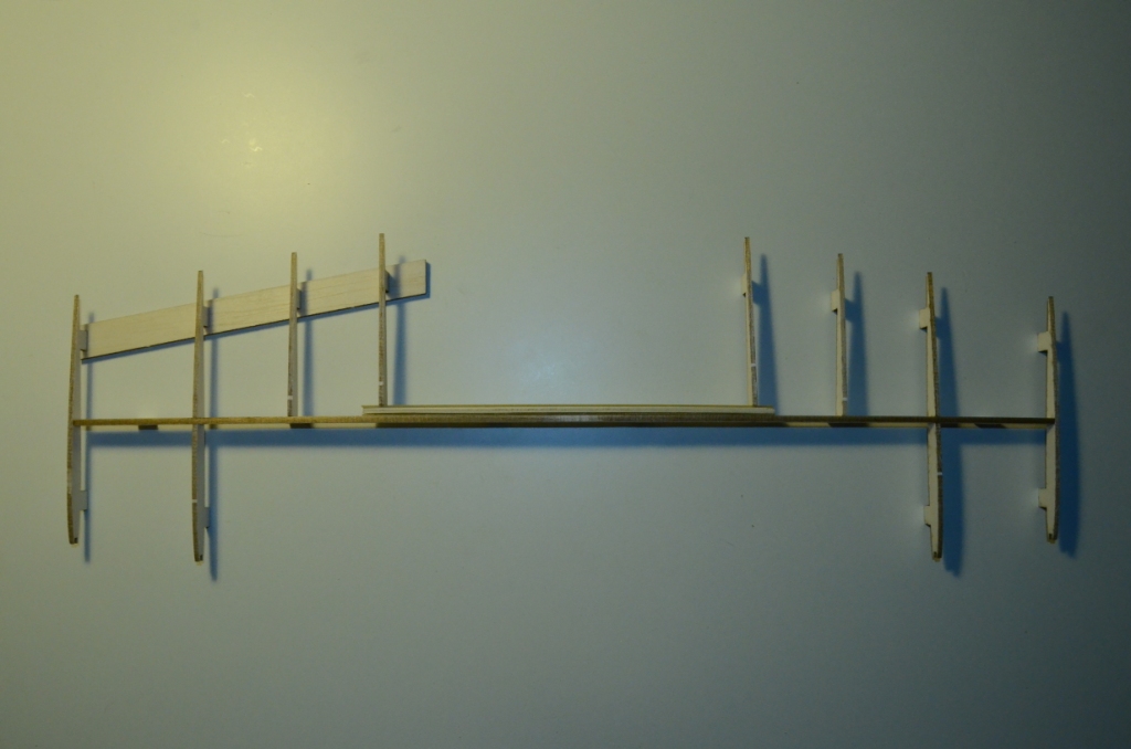 Skleiłem ze sobą łącznik natarcia z balsosklejki, dokleiłem do niego trapez z balsy, a resztę połączyłem na wpusty i klej CA.