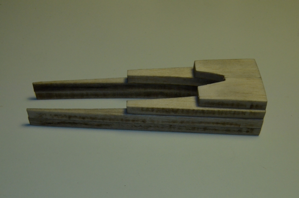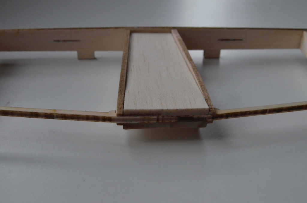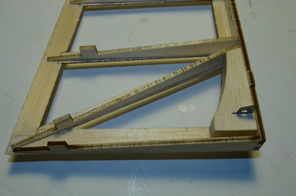 Potem jeszcze małe, trapezowe wzmocnienia od góry i od dołu z balsy 3mm.