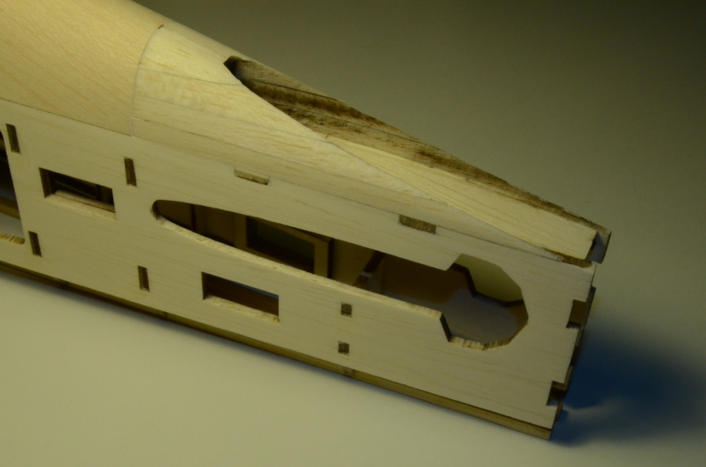 Dodam jeszcze, że od samego początku wszystkie części: kadłub, stateczniki, stery tylko lekko / zgrubnie przecieram zostawiając finalne pylenie i szlifowanie przed samym oklejeniem modelu.