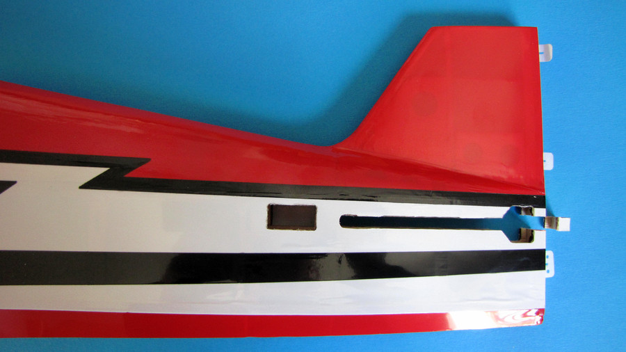Na koniec kawałek 5mm balsy z tyłu statecznika (znów niestety z twardego materiału), zrobiłem skosy i wyszlifowałem - aby były przyzwoite wychylenia S.W.