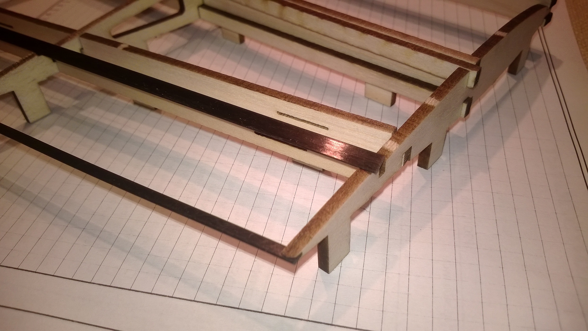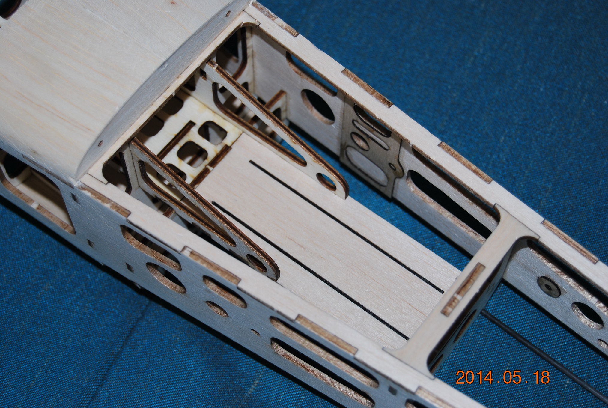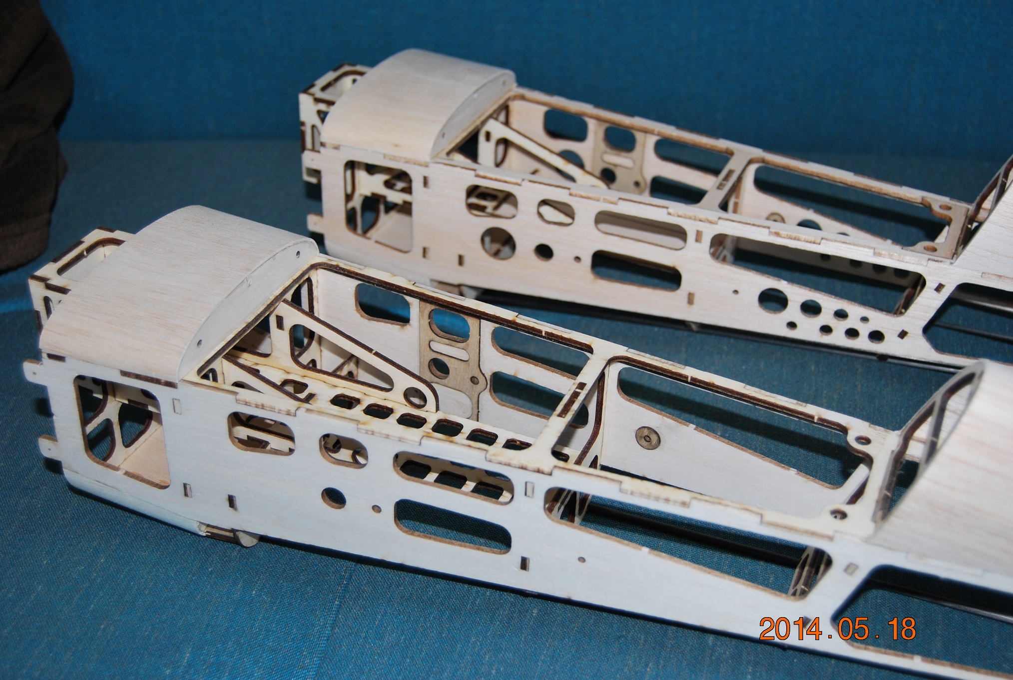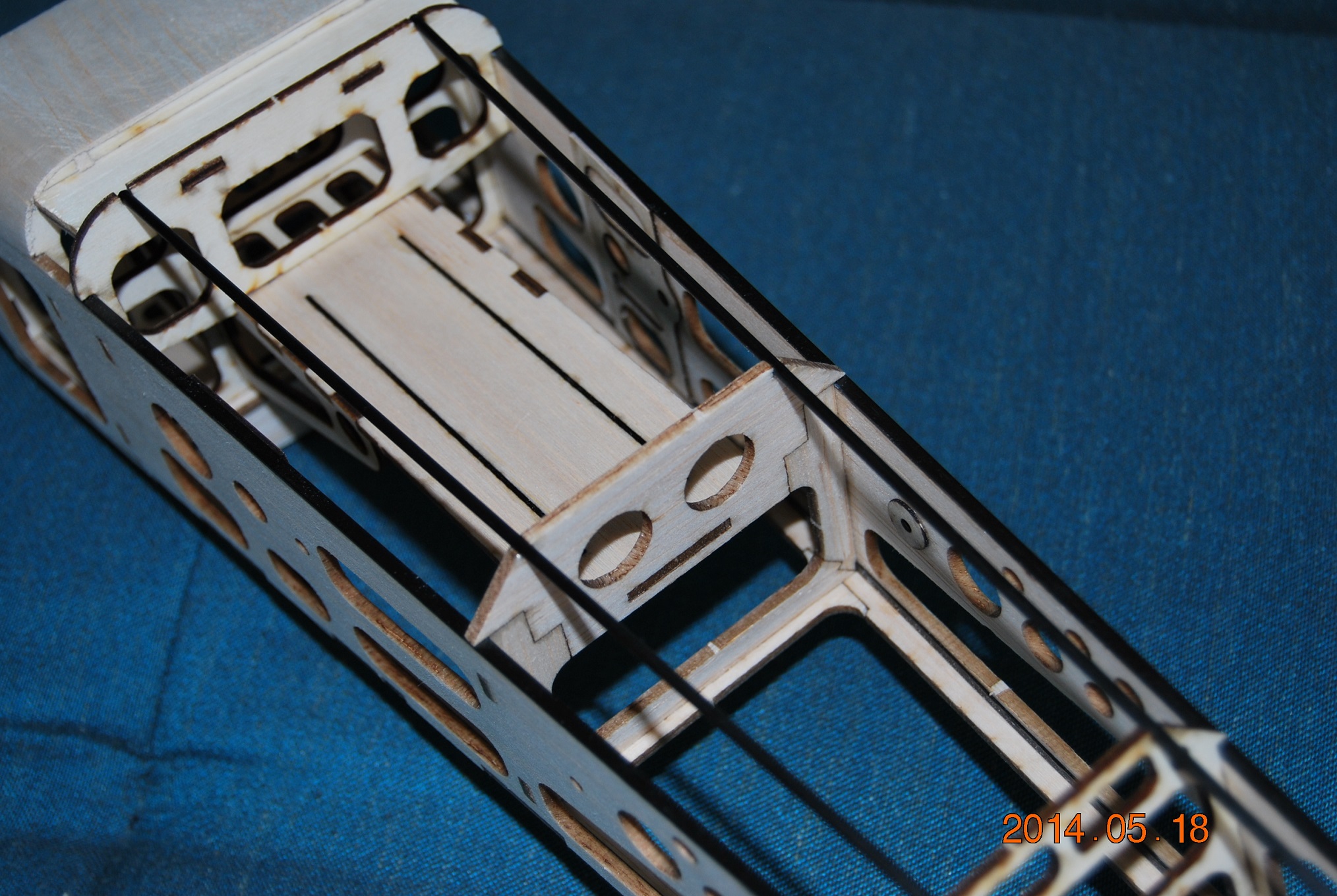Jestem pełen podziwu z tym ażurowaniem.Jest to jaskrawy przykład ile można pozbyć się materiału nie tracąc na wytrzymałości. Dobry przykład dla modelarzy początkujących, którzy w większości mają tendencję do "konstrukcji pancernych".Jak miałbym to wycinać ręcznie ,to bym się zapłakał. Nie podobają mi się te przypalone krawędzie. Jaki to klej trzyma? Tym bardziej widzę, że wagi kleju nie podajesz.A to też waży.