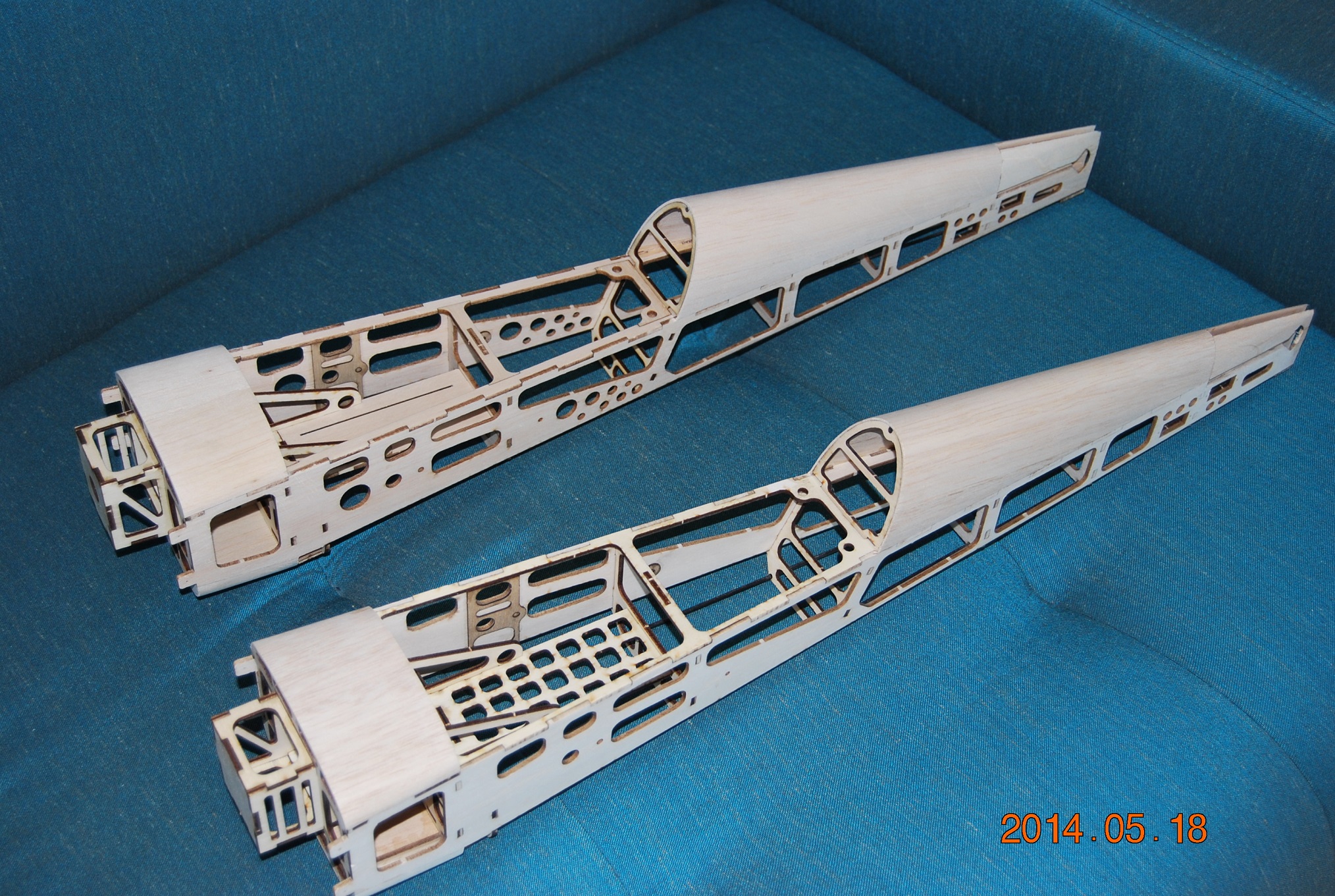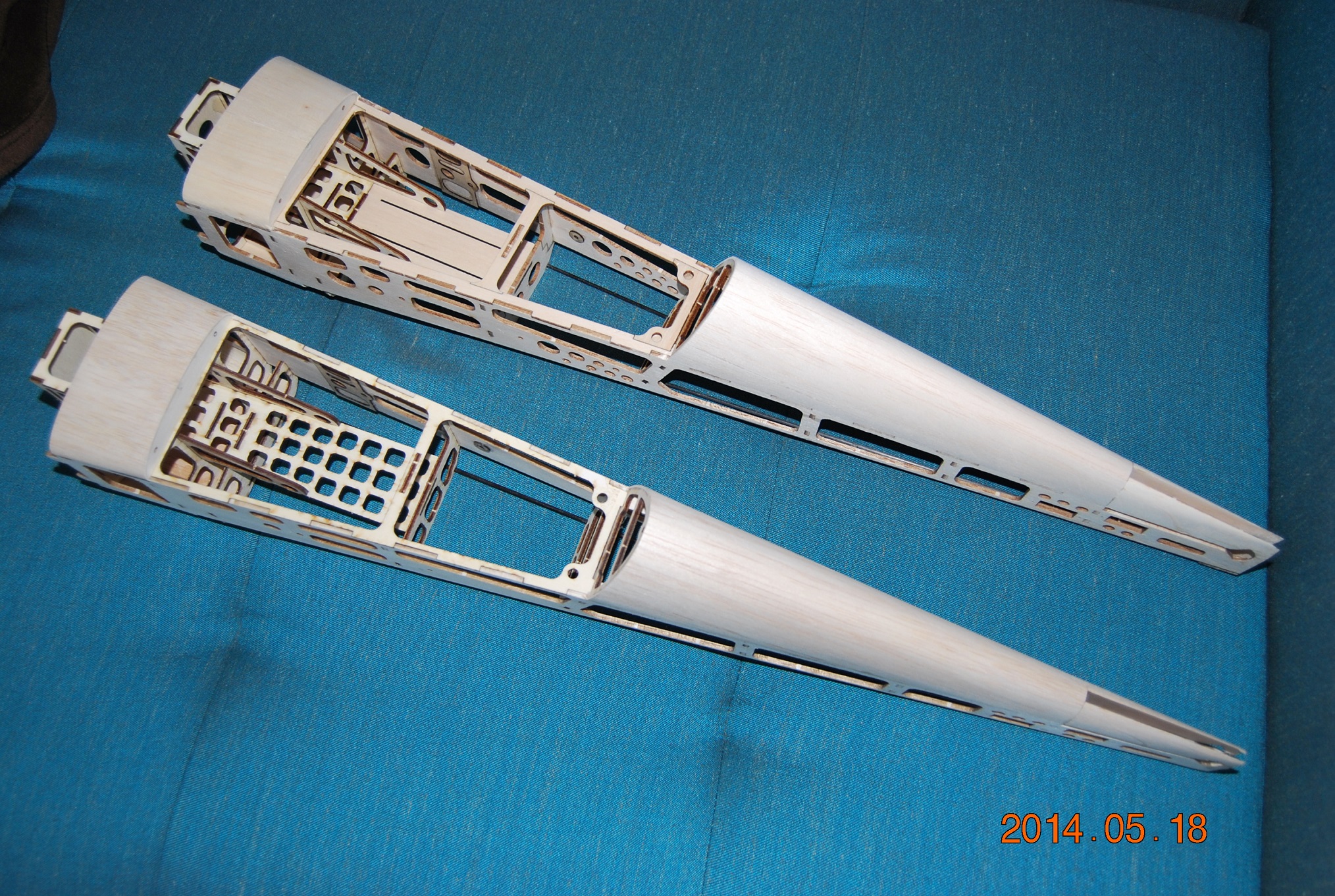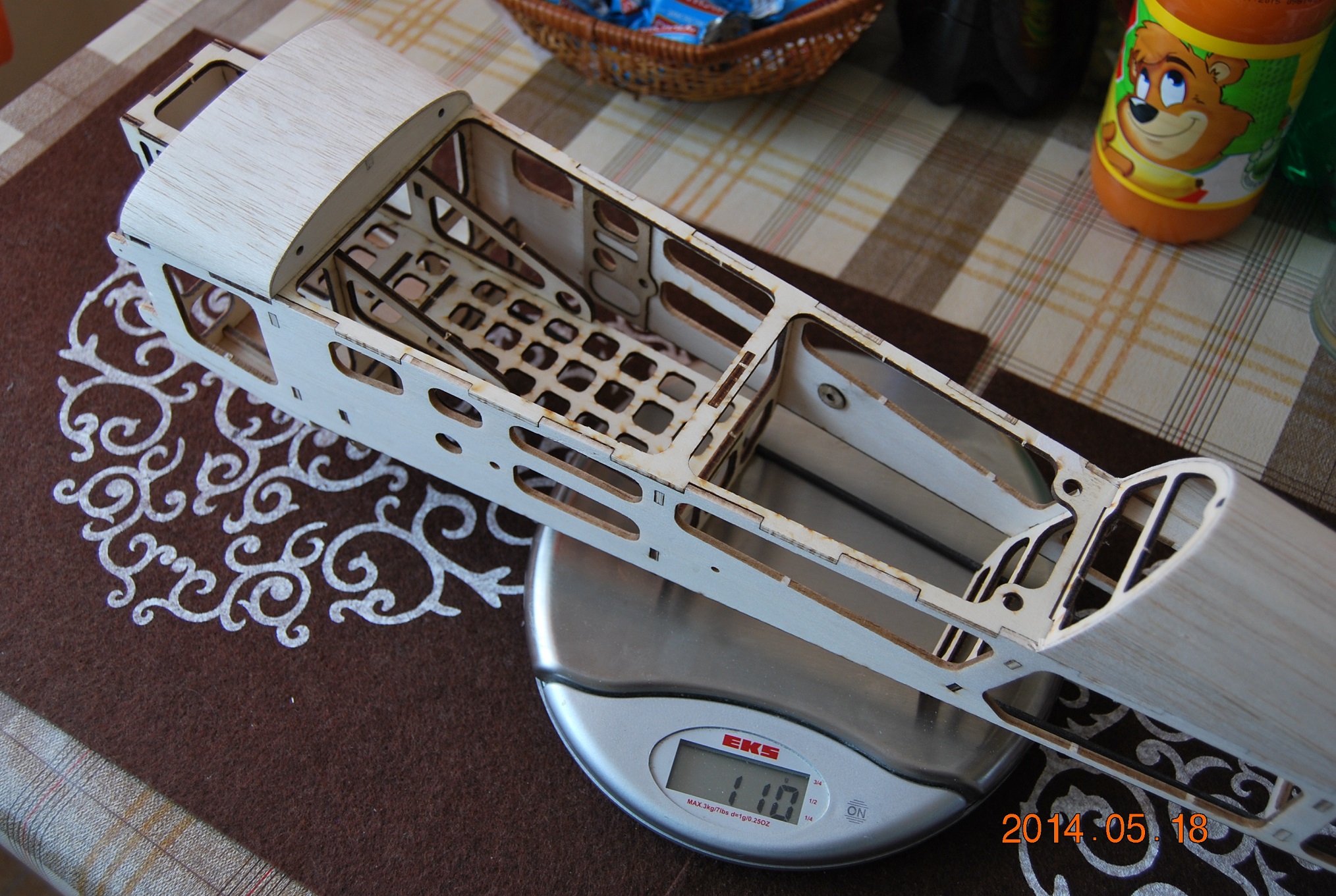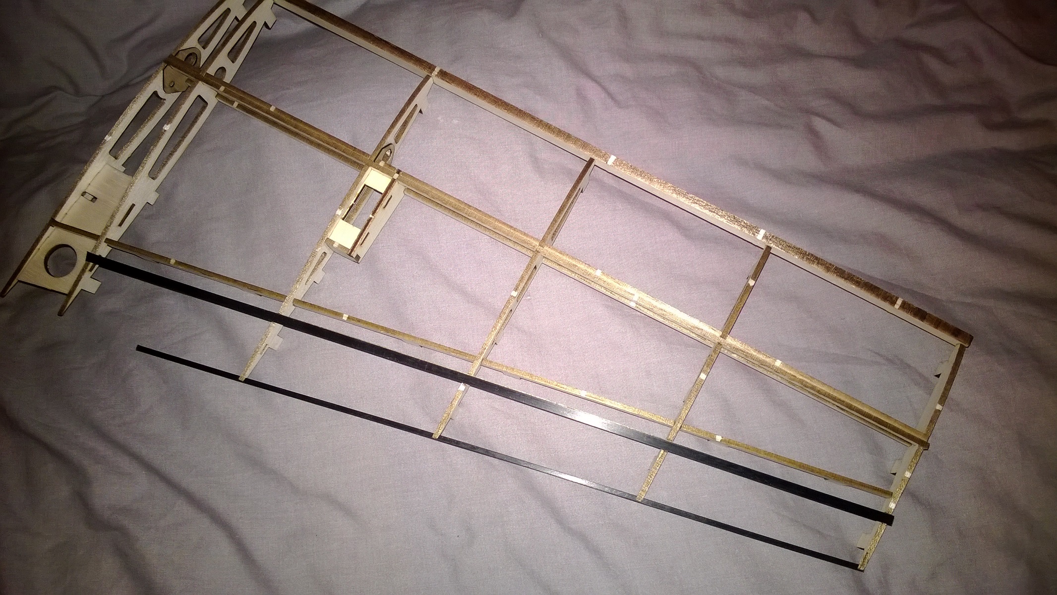 Zmieniłem trochę konstrukcję kadłuba, nie wiem jak można odchudzić jeszcze bardziej. Wszystkie elementy obu skrzydełek ważą 98g.