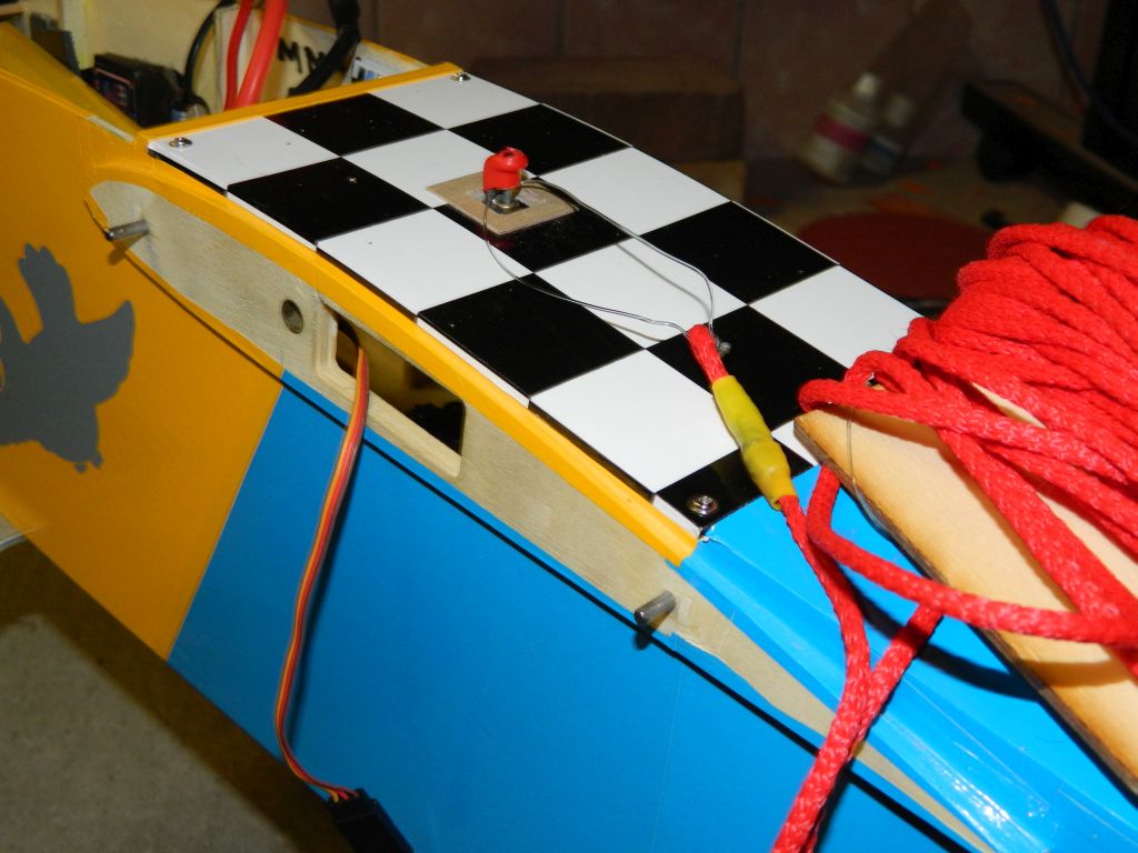 Spróbuj porobić statyczne testy wypinania pod obciążeniem. Ponaciągałbym też cały układ, by sprawdzić, że linka nie ma szans na zablokowanie się. Najważniejszy wydaje się wyczep w holowanym modelu...