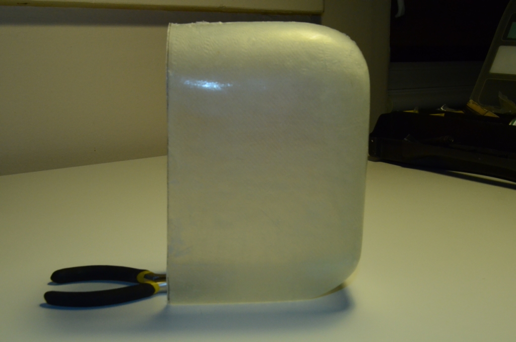 Jako, że jest to forma negatywowa, kolejne warstwy żywicy oraz tkaniny szklanej zmniejszały obwód do wewnątrz, czyli w praktyce pomniejszały obwód wewnętrzny owiewki.