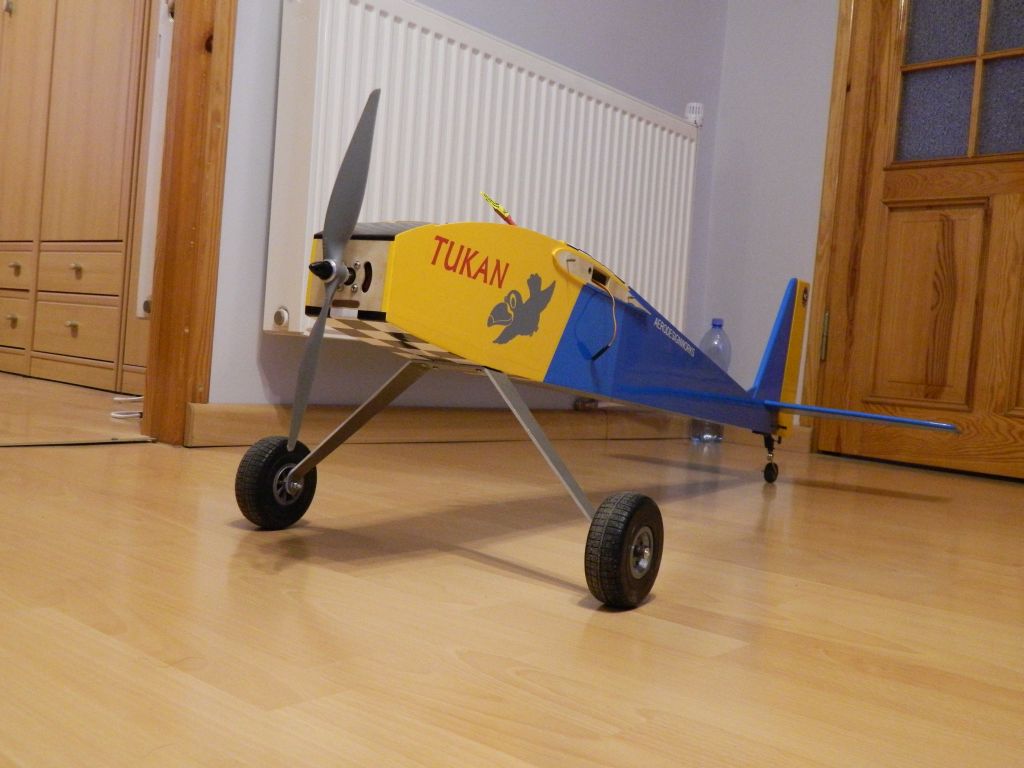 Dziś miałem przyjemność polatać Tukanem. Powiem tak: jest super! Łatwy start (pół gazu wystarczy) parę metrów rozbiegu i ogon już jest w powietrzu, a po chwili cały model. A prędkość podejścia do lądowania? Szok! Tak powolnym modelem jeszcze nie latałem. Akrobację też można pokręcić, a lot na plecach praktycznie nie wymaga wychylenia SW, aby model leciał do góry kołami.