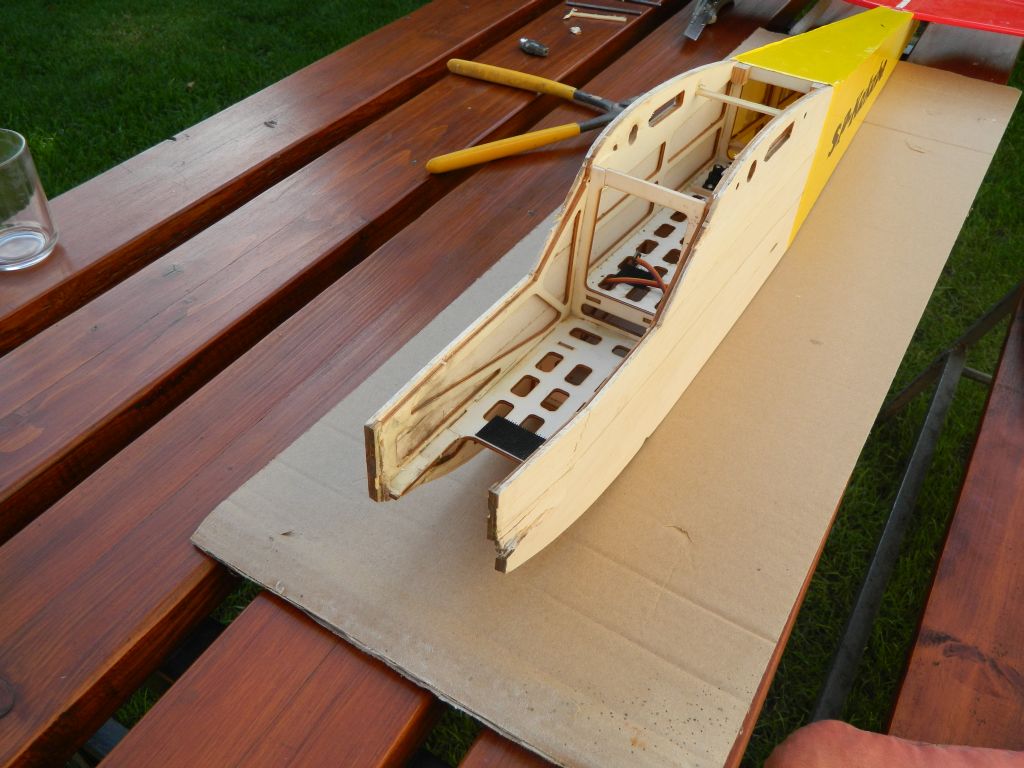 Przód wydłużamy, bo chcemy pozbyć się ołowiu oraz mamy niecny plan zmiany silnika na większy na 4S i prób holowania małych szybowców