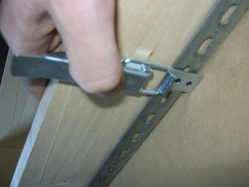 3. Moja koncepcja mocowania materiału do ramki na zatrzaski(oczywiście powierzchnia styku materiał-metal i materiał-drewno będize uzupełniona o naklejony papier ścierny, żeby materiał nie uciekł podczas formowania):