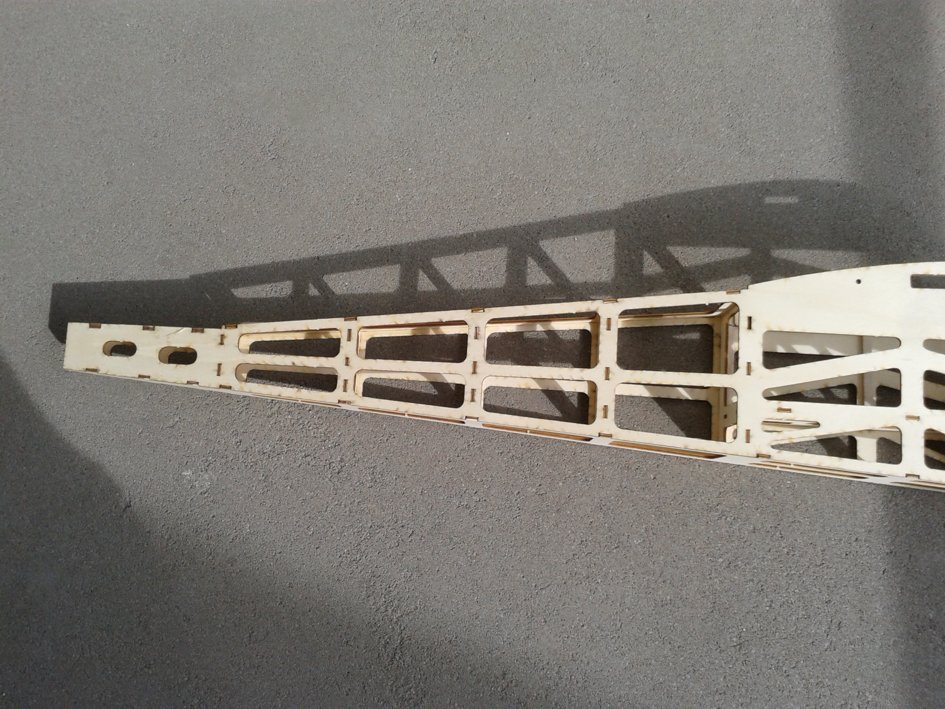 Elementy ze sklejki wycięte i wyszlifowane w bloczku. Przymiarka "na sucho", wyznaczyłem bazę kontrolną, zniwelowałem, no wygląda że oba płaty mają ten sam kąt zaklinowania. Klejenie, ogólnie 66A, same pręty ustalające i rurka łącznika na Distal.