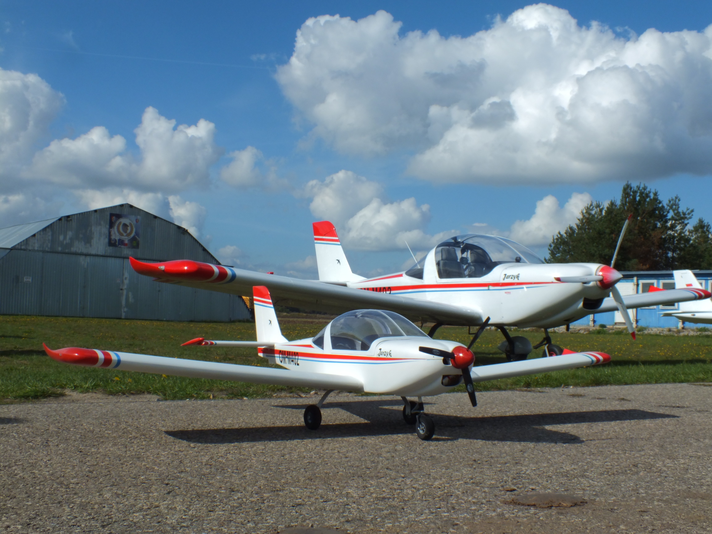 Oblot miał miejsce na lądowisku w Tuszowie Narodowym. Warunki oceniam na średnie, wiatr ok. 3m/s z Północy, który powodował znaczne rotory od lasu. Na starcie dał o sobie znać lekki niedobór mocy, użyty silnik ma 1200g ciągu statycznego natomiast model waży 2.2kg więc stosunek mocy do wagi wynosi troszkę ponad 1:2 co jest jednak trochę maławo. Jednak po oderwaniu od ziemi nie jest tak tragicznie. Na pierwszy lot wybrałem start z trawy, ponieważ do wyboru miałem jeszcze wąską asfaltową drogę, lecz bałem się o utratę kierunku przy starcie, a szkoda było by zarysować nowy lakier Po sporym rozbiegu i oderwaniu dał się odczuć przesunięty do tyłu ŚĆ. Pomimo znacznego doważenia w postaci 10cm kawałka pręta tzw. "żebrówki" nadal pasuje przesunąć go do przodu o 1-1.2cm. Wznoszenie jest możliwe po uprzednim rozpędzeniu konstrukcji i z zakresem obrotów w przedziale 85-100%, lot poziomy jest możliwy przy 60% wychyleniu przepustnicy. Ciężko mi powiedzieć jak zachowuje się model w spokojnym powietrzu ponieważ warunki nie były miarodajne. Pękaty kadłub jest podatny na boczne podmuchy, turbulencja tego dnia dała się bardzo we znaki. Model wytrącany z równowagi powracał do poprzedniego stanu co powinno potwierdzać założenia i konstruktora samolotu i moje. Prędkość lotu realistyczna jak na tą skalę. Zrobiłem jeden 8 minutowy lot, w tym parę zakrętów i trzy imitowane podejścia do lądowania. W jednym z zakrętów troszkę się wyluzowałem i gwałtowny podmuch spowodował że model sypnął się delikatnie w korek, natychmiast odpuściłem SW i wyprowadzenie nastąpiło równie szybko jak wprowadzenie, ze zmianą wejściowego kierunku o ok. 30st. Zaskoczeniem było dla mnie jak model się "niesie". Jak dotąd to był to pierwszy tak ciężki model, którym latałem i muszę powiedzieć że nawet jak na moje doświadczenie to wymagał sporo uwagi przy planowaniu lądowania. Potwierdza to szczególnie już finalne lądowanie w którym znowu za szybko się wyluzowałem i model po fazie podprowadzenia zamiast ładnie wytrzymać na wysokości ~20cm to wypłynął mi na ok 1m i następnie wszystko potoczyło się bardzo szybko, dodałem lekko gazu żeby nie wytracił zbytnio prędkości lecz stres zrobił swoje i model lekko przepadł z wysokości ok.40cm. Efektem tego było lekko odgięta goleń podwozia głównego, lecz jest to łatwa w naprawie usterka. Satysfakcja po oblocie była bardzo duża, mam zamiar wprowadzić kilka zmian m.in dołożyć trochę masy na przód, dobrać wielkość stałych trymerów na lotkach, SW i SK, wsadzić mocniejszy napęd (ok. 2kg ciągu, Reg. 40A ale to na przyszły sezon), Wzmocnić konstrukcję kółka przedniego (wydaje mi się delikatne jak na start z trawy). Mam nadzieję że uda mi się wykonać jeszcze lot w tym sezonie to zobaczę czy te zmiany coś wniosą. Trochę obawiam się tylko o czas lotu. Mam do dyspozycji pakiet 3000mAh i po tych 8, może 7 minutach lotu jego napięcie wynosi 12.1V. Trochę boję się odcięcia zasilania, ponieważ już drugiej próby podejścia nie będę miał, więc wolałem już drugi raz nie próbować. Na koniec mogę powiedzieć że warto było tyle czasu poświęcić na dopieszczanie szczegółów, których może nie widać ale ma się świadomość że tyle pracy nie poszło na marne. bardzo miłe są również uwagi od gapiów no i pozytywne opinie z tzw "lotniskowej loży szyderców"