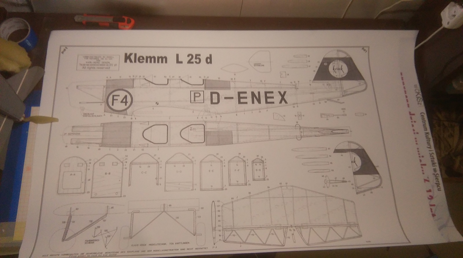 Witam ponownie - naszła mnie ochota na dolnopłat. Samolot musiał być prosty w budowie bo wszystkie elementy będę wycinał sam. Zależało mi także na stałym podwoziu, a Klemm łączy w sobie te cechy.
