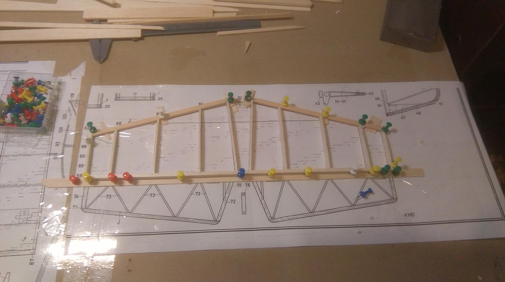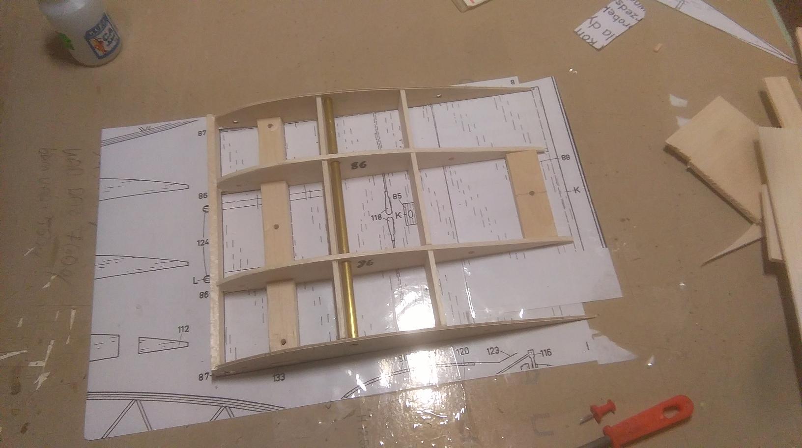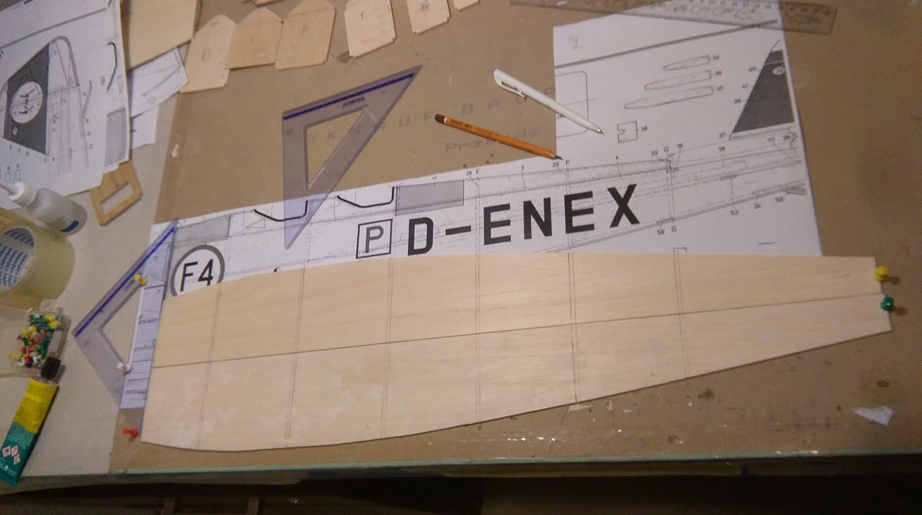 Wręgi miałem zamiar zrobić z balsy 3mm , te 2 szt. przy skrzydłach ze sklejki 2 mm. W rogach kadłuba dać listewki 3x3 lub 4x4 a potem kadłub okleić balsą 2 mm.