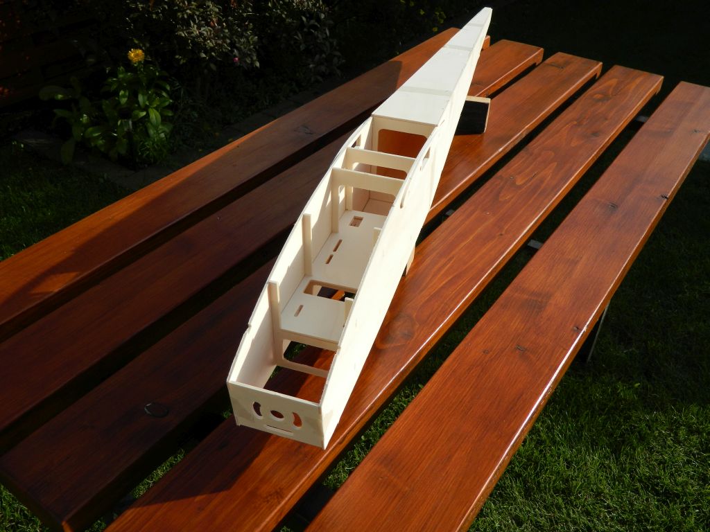 Kadłub wygląda jak przerośnięty kadłub szybowca no ale to rzecz gustu a o tych ponoć się nie dyskutuje. Łącznik płatów dość filigranowy a profil gruby i nośny. Jakieś zastrzały planujecie?