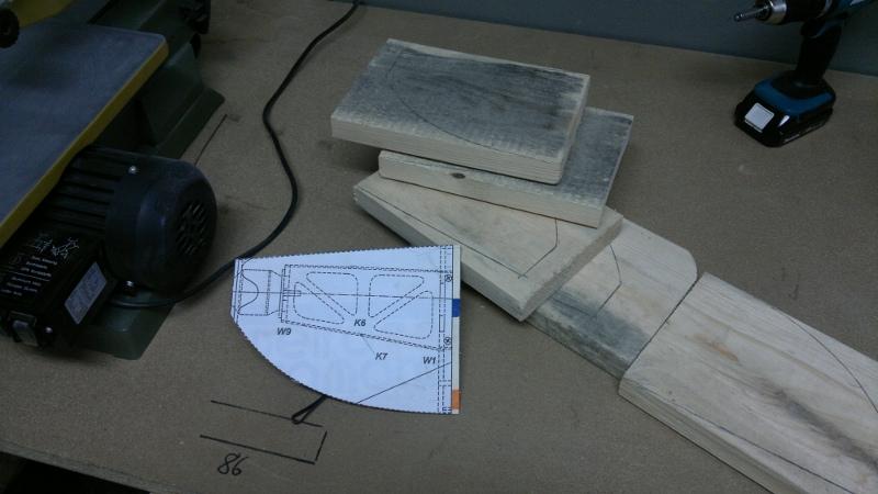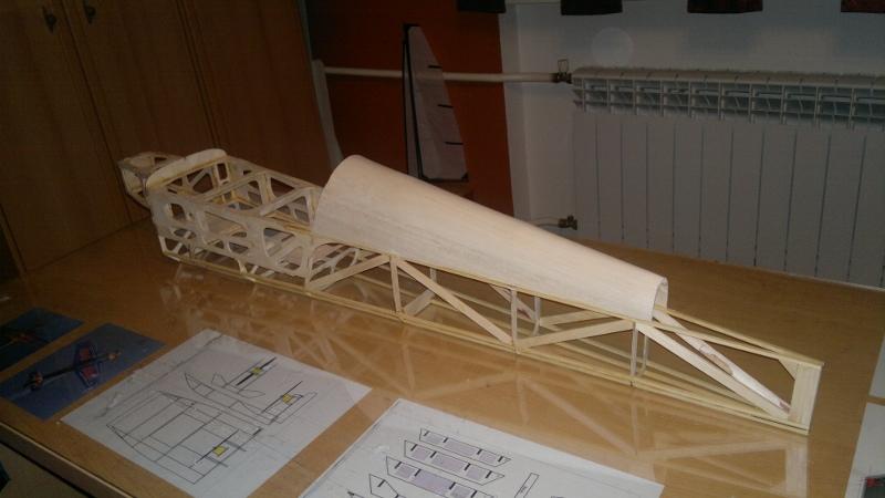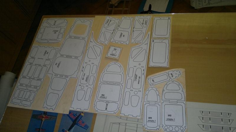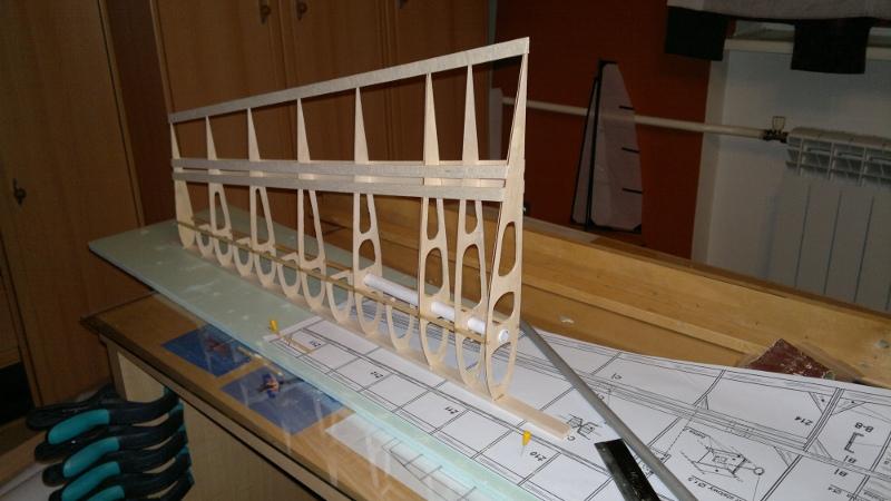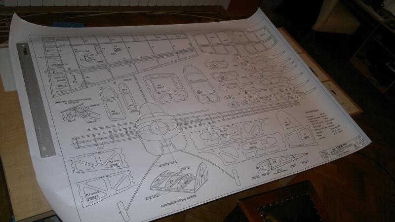 kieszeń przedłużona w stosunku do tego co jest na planach keson i nakładki z 1,5mm balsy żeberka po powiększeniu zakończenie miały grubości 5mm więc przedłużyłem linie i na długości żeberka zyskałem po 2 cm