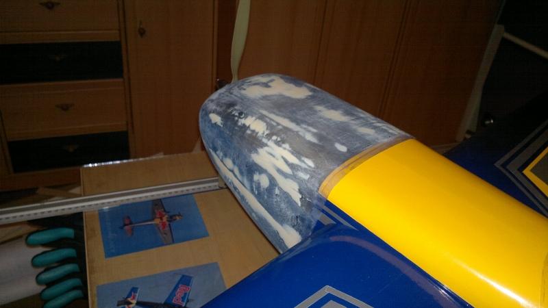 Pogoda w ubiegły weekend pozwoliła na oblot więc nie mając maski użyłem reklamówki do zaślepienia przodu normalnie z tym silnikiem używałem śmigła 13x8 ale kasując madmana w Wilczych laskach złamałem ostatnie i zostało tylko 13x4 a to stanowczo za mało.