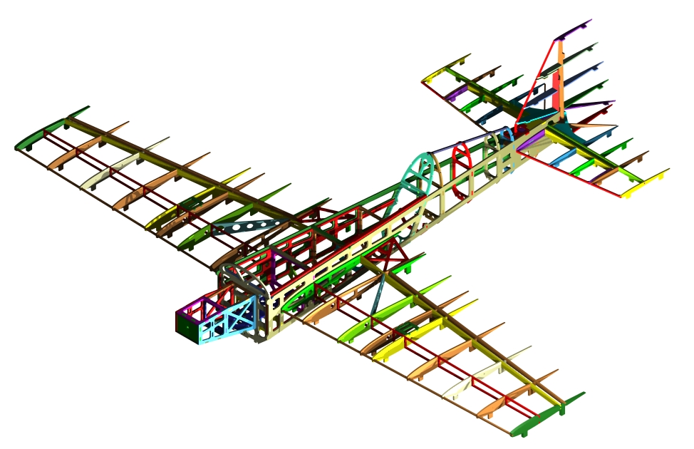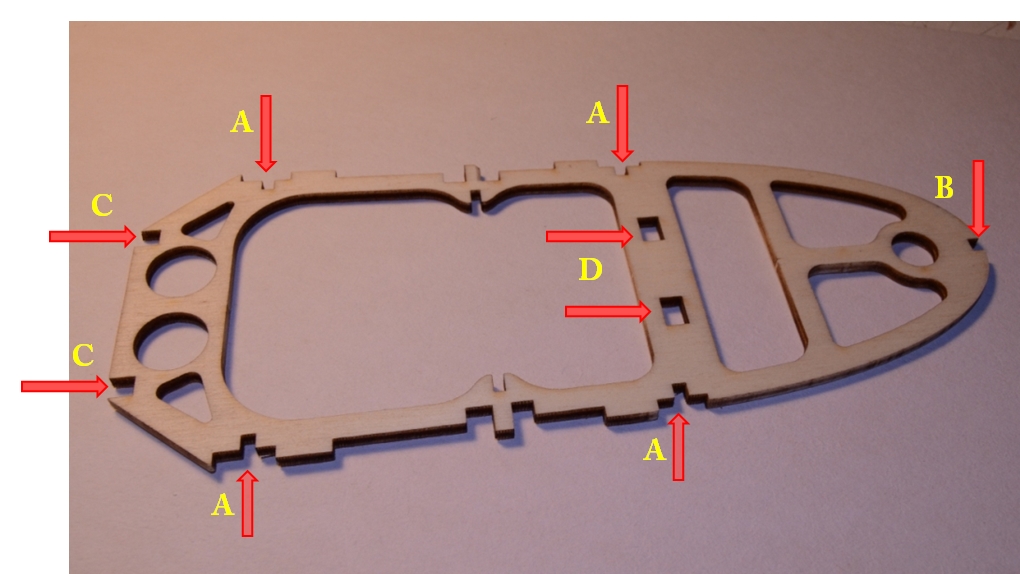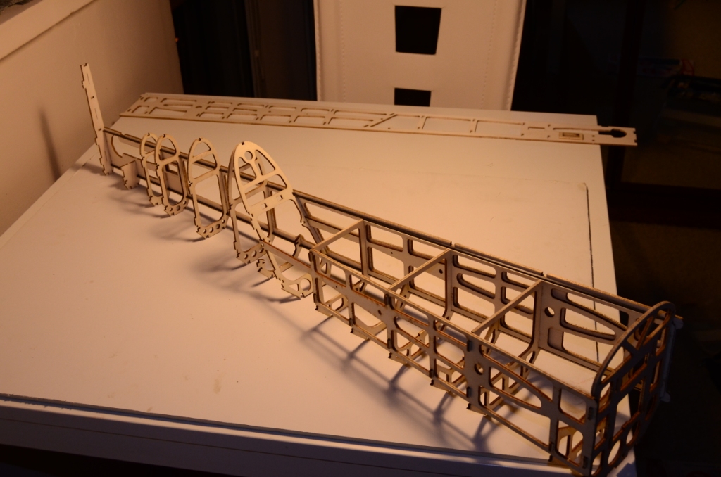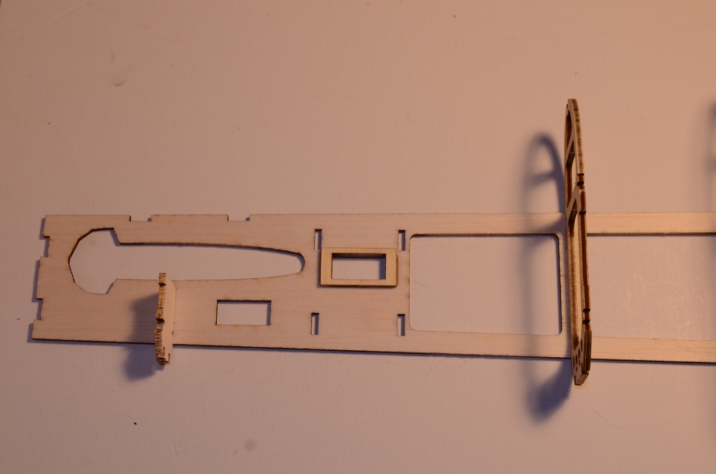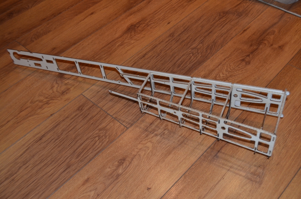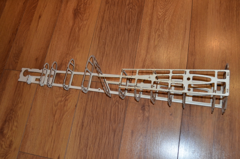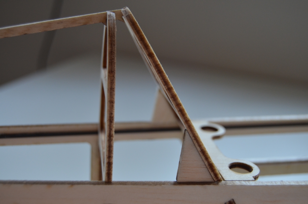 Aby jak najlepiej utrzymać wszystkie zakładane w modelu kąty - do ukośnej wręgi można dokleić 2 specjalne podpórki (te trójkątne)