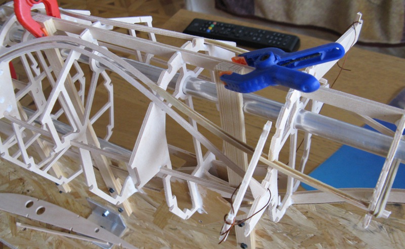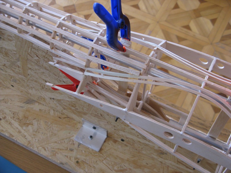 Dokleiłem podłużnice. Zostały tylko dwie ale je dopiero na końcu na razie nie mam dostępu do nich.