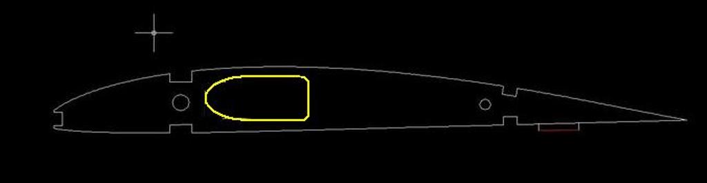 A ja zasugerowałbym aby wycięcie w żeberku było przesunięte bardziej ku tyłowi i oddalone od wycięcia pod dźwigary (między którymi jest jeszcze otwór). Powstaje w tym miejscu najsłabszy obszar co wytrzymałościowo nie jest wskazane. Oddalając ażur zmniejszamy też masę za środkiem ciężkości - co w przypadku szybowców jest pożądane. Zysk co prawda niewielki ale zawsze jest ;) Poglądowo szkic