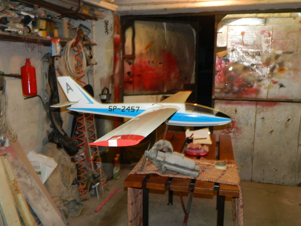 Jak zwykle przed oblotem pojawiają się pewne wątpliwości. Wątpliwości co do samej konstrukcji i wykonania. Cały statecznik pionowy ze sterem jest największą zagadką. W fazie projektowania nie przemyśleliśmy konstrukcji, w szczególności napędu. U mnie jest dość niestabilny..... hmmm , taki miękki ;) . Do tego kilka kiszek w wykonaniu płatów, ale to już moja broszka....jakby co to planuję wykonanie drugiego kompletu ;) . No cóż, takie myśli są normą przed oblotem. Mam nadzieję, że jutro pogoda pozwoli na wykonanie paru lotów. Na zdjęciu: Foka na moim stanowisku do wyważania :lol: .