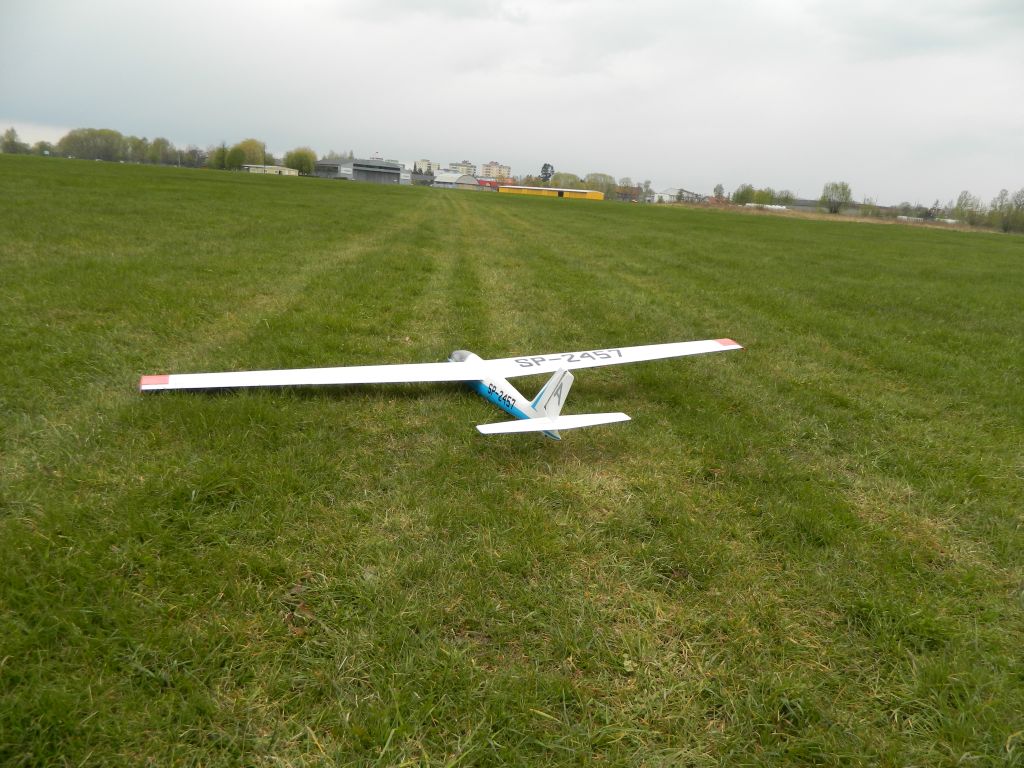 Majówka. Czyli deszcz i zimno :lol: . Z Tomkiem czailiśmy się cały dzień, żeby polatać, dopiero późnym popołudniem wyszło słońce i szybko na lotnisko. Wiatr, zimno i jak się później okazało silna turbulencja w powietrzu.