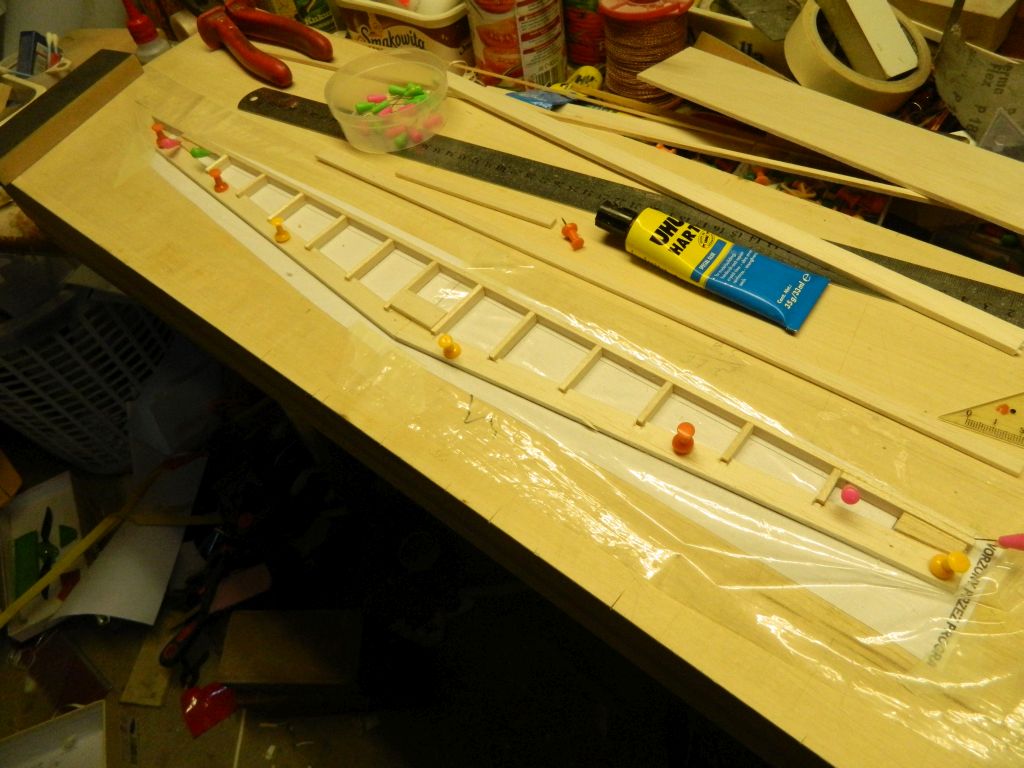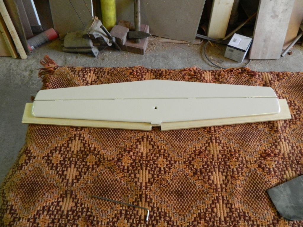 Pogoda wybitnie nie szybowcowa, więc można poświęcić trochę czasu na prace warsztatowe. Tak jak pisałem wcześniej, moim zdaniem należy powiększyć poziom, kilka chwil przy komputerze i można rozpoczynać budowę. Nowy statecznik ma powiększoną cięciwę o 10 mm w stronę natarcia i zwiększoną rozpiętość o 20 mm z każdej strony. Teraz natarcie wychodzi na boki kadłuba, w sumie tak miało być :lol: w prototypie, więc jest odpowiednie wycięcie w stateczniku. Statecznik już jest zrobiony - tylko pokryć i zawiasy - ster należy jeszcze wyszlifować. Waga pierwszej wersji poziomu to 35 gram, obecnej w tej postaci co na zdjęciach, statecznik 17 g, ster 9 g.
