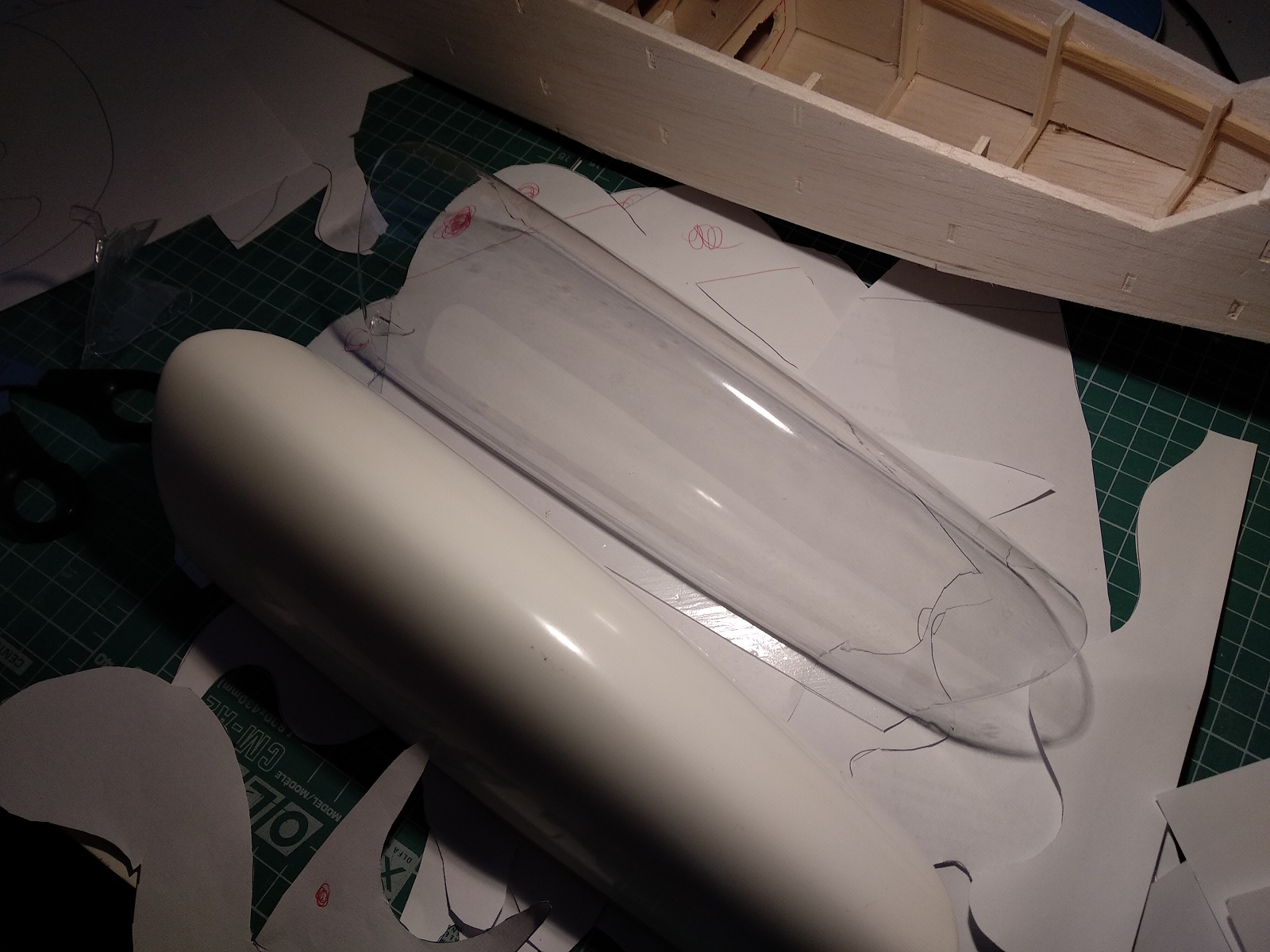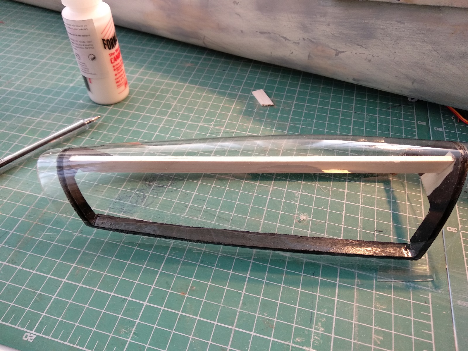 Przed klejeniem ułożyłem ramkę na kadłubie, i wkleiłem rozpórkę, by ramka nie rozjechała się podczas klejenia owiewki.