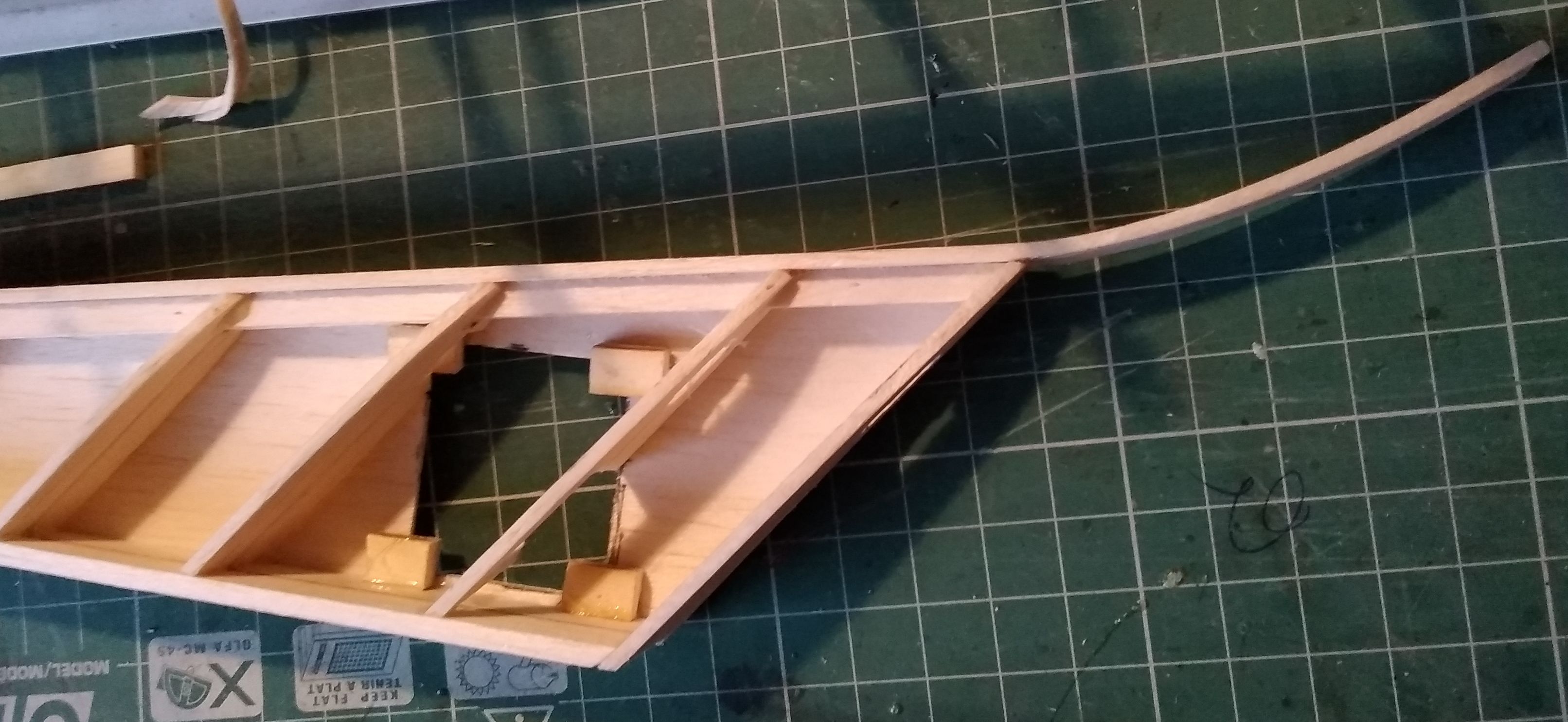Wyszło nie źle, troszkę kleju z opiłkami balsy na same końcówki, finalnie i tak jeszcze przyjdzie szkło.