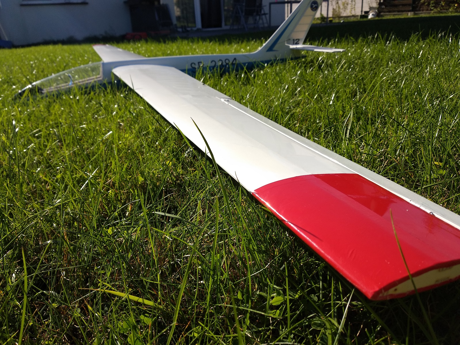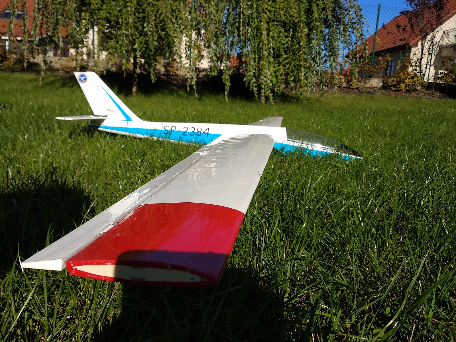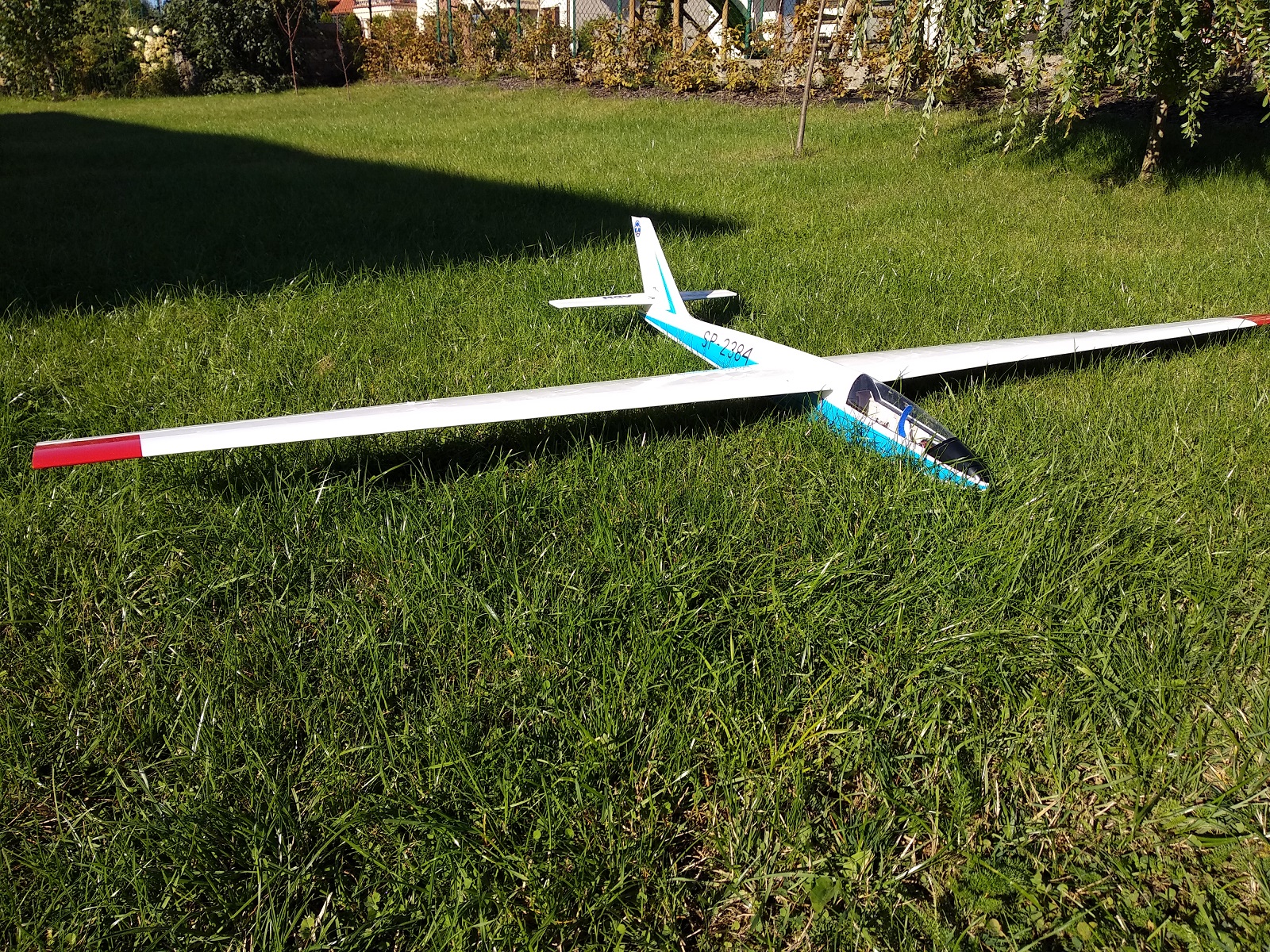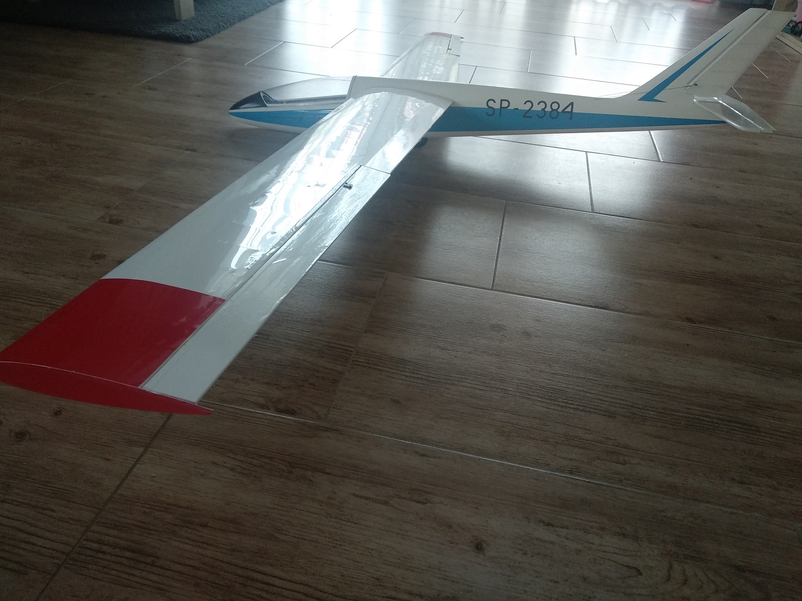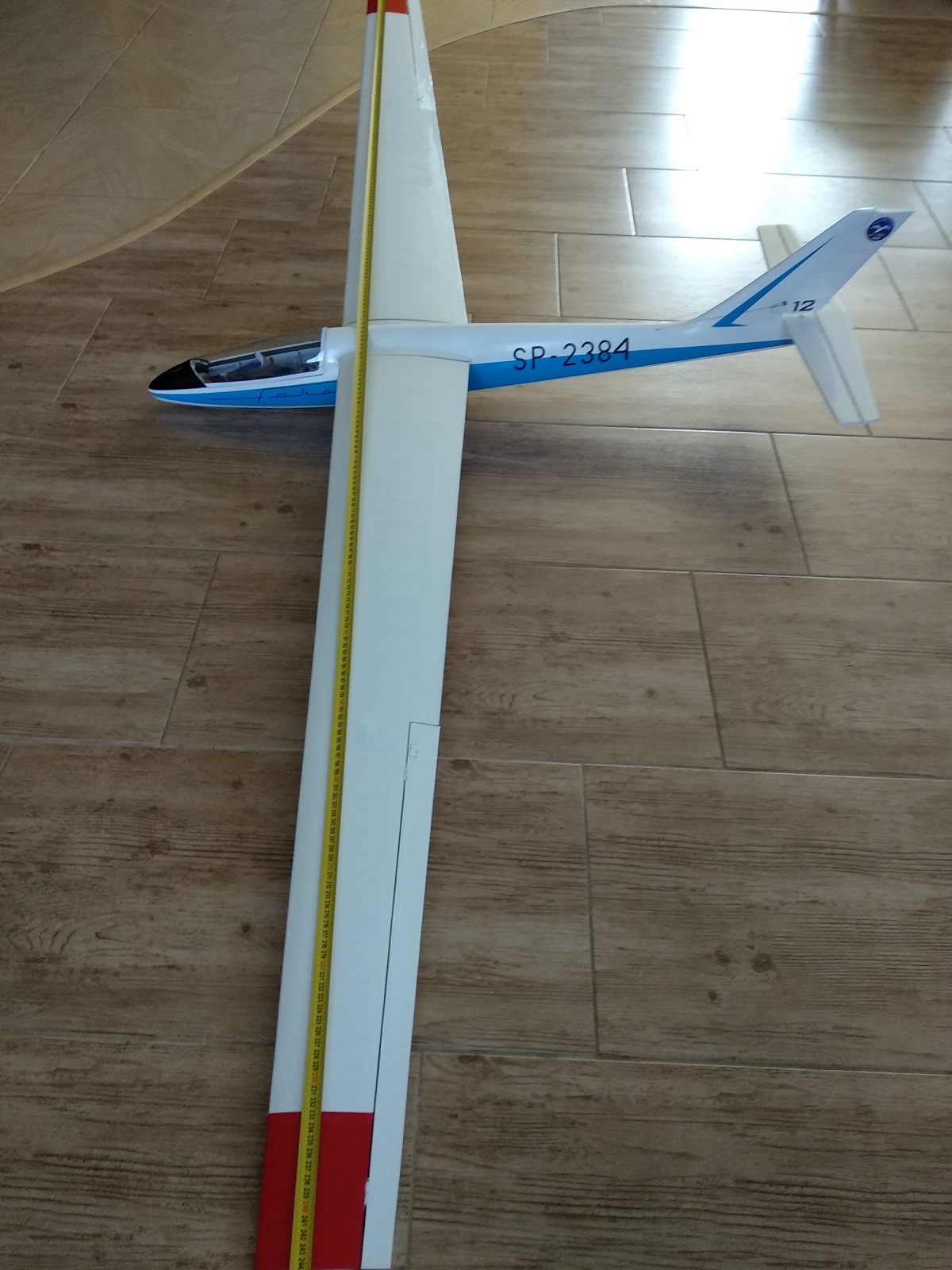 Waga do lotu 1395 gram, SC 55mm od krawędzi natarcia przy kadłubie.