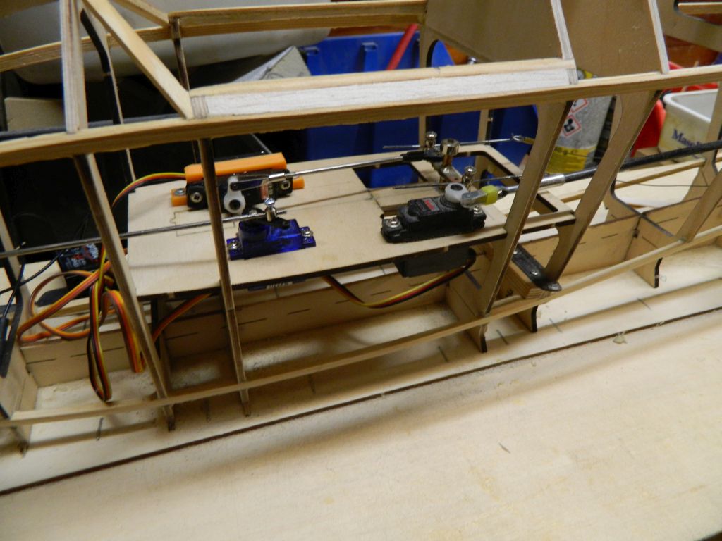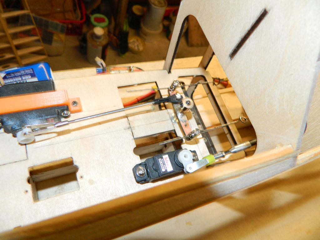 Zbliżam się do pokrywania przedniej części kadłuba, dlatego plan na dzisiaj to wyposażenie w kabinie. Po zamknięciu tej części byłby problem z wsadzeniem wszystkiego. Wkleiłem zaczep do holu, zamocowałem serwa. Sprawdziłem działanie.