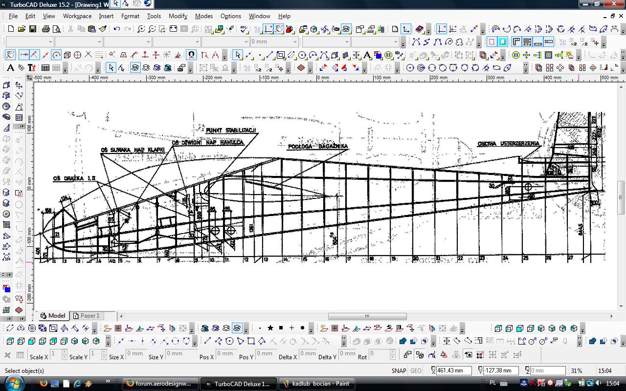 Trochę go tam rysuję. Kadłub jest 3D natomiast statecznik obrysowany na ten moment polyliniami Potem się je usunie. Będzie dobrze :)