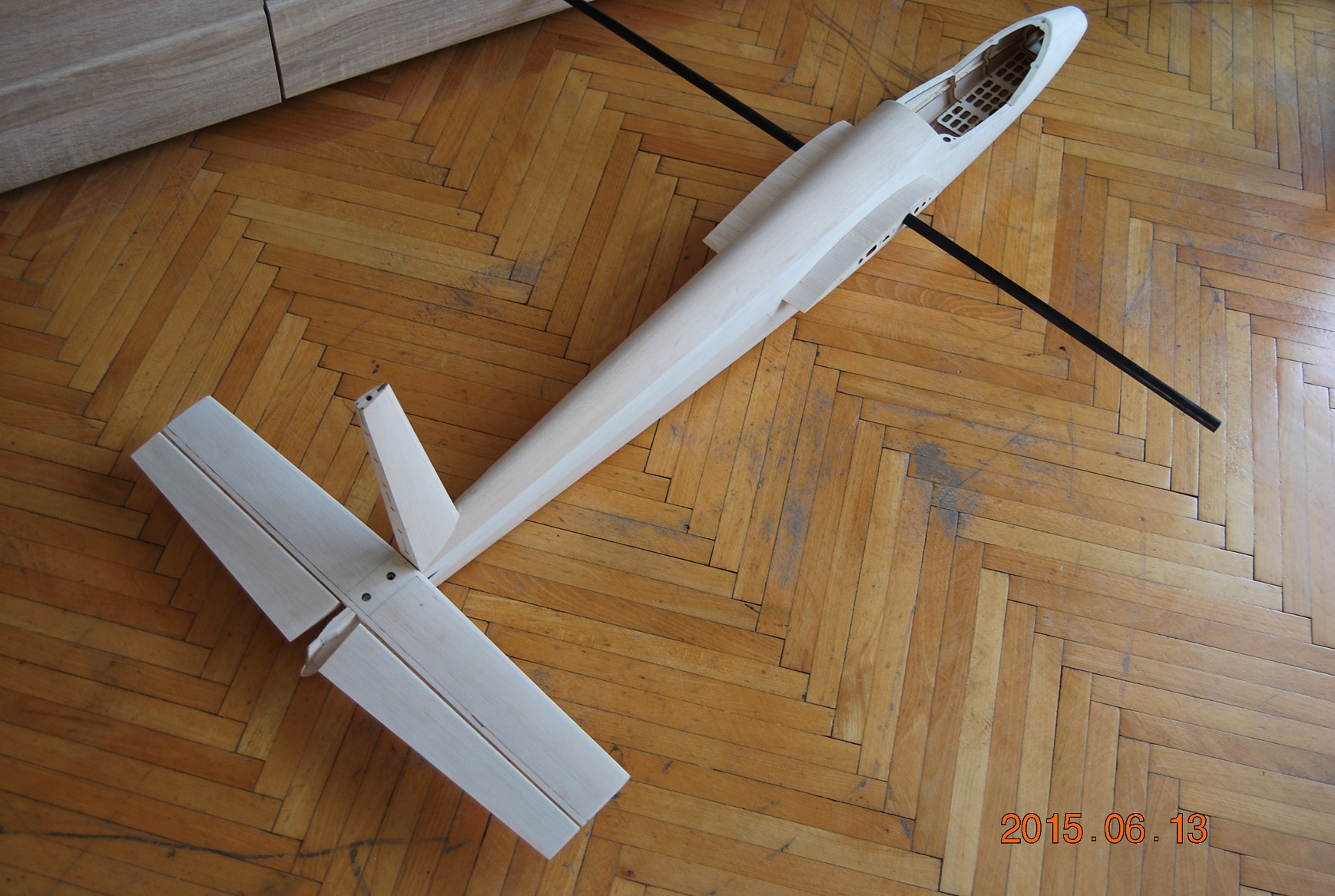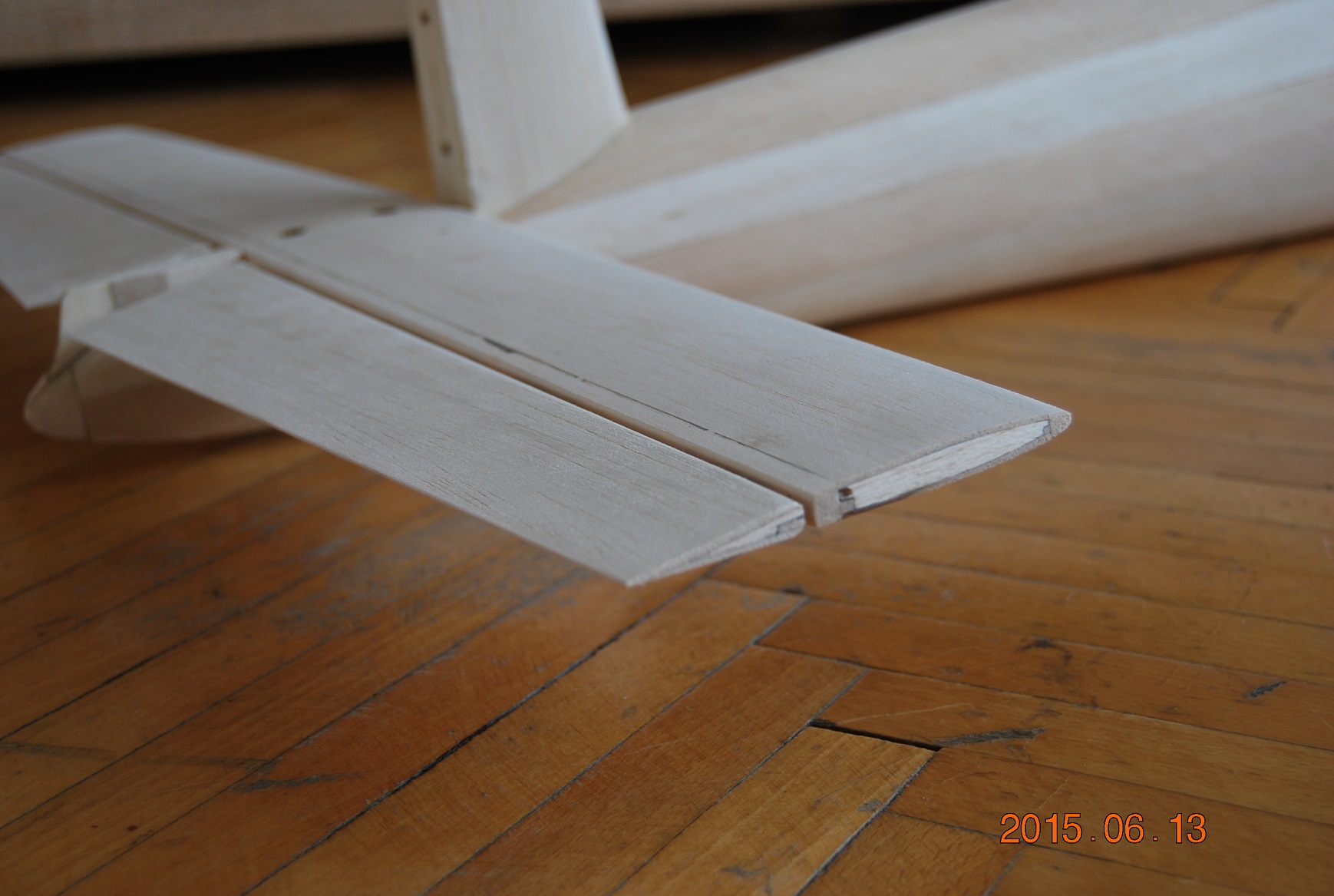 Pokleiłem połówki sw, wstępnie wyszlifowane, brak jeszcze końcówek z balsy 6mm. Statecznik wyszedł sztywny. Przerobiłem też końcówkę kadłuba za stat.poziomym. Teraz jest zbliżona do oryginału, wymaga jeszcze trochę korekty.