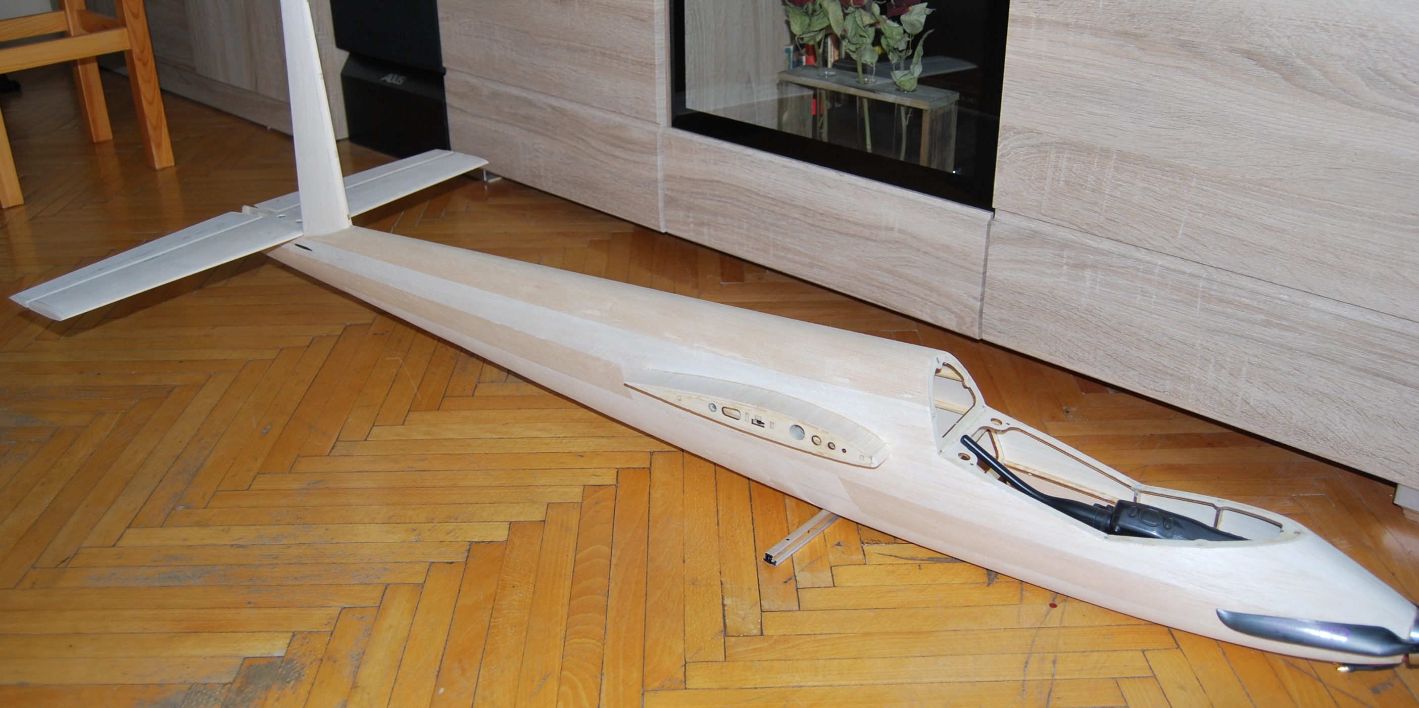 Dokończyłem ster wysokości i statecznik. Teraz tylko laminowanie. Podszlifowałem doklejony spływ pionowego. Wyszła draka bo bez demontażu steru kierunku nie przykręci się steru wysokości. Zadziwiające że nie zmierzyłem tego. W razie jakiś zestawów kwestia do przerobienia. Przeszlifowałem również płetwę za statecznikiem poziomym, teraz bardziej przypomina oryginał.