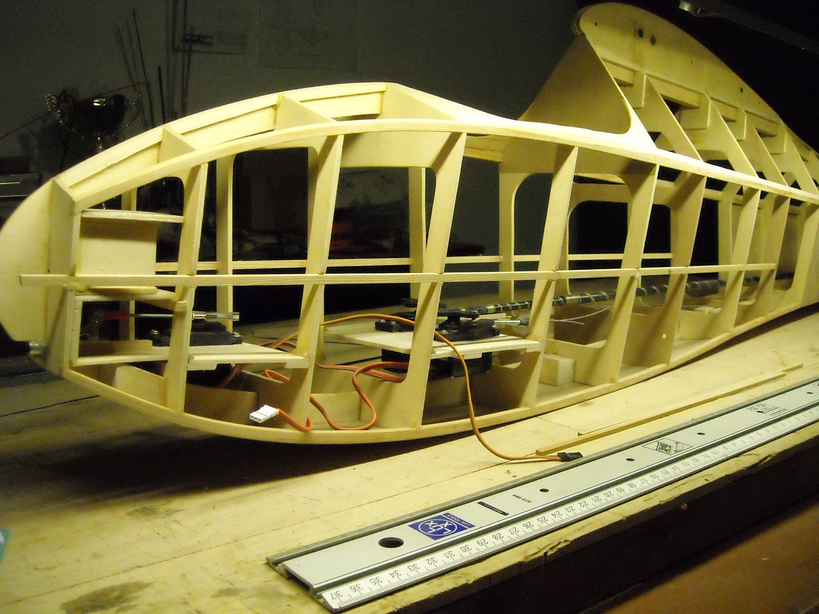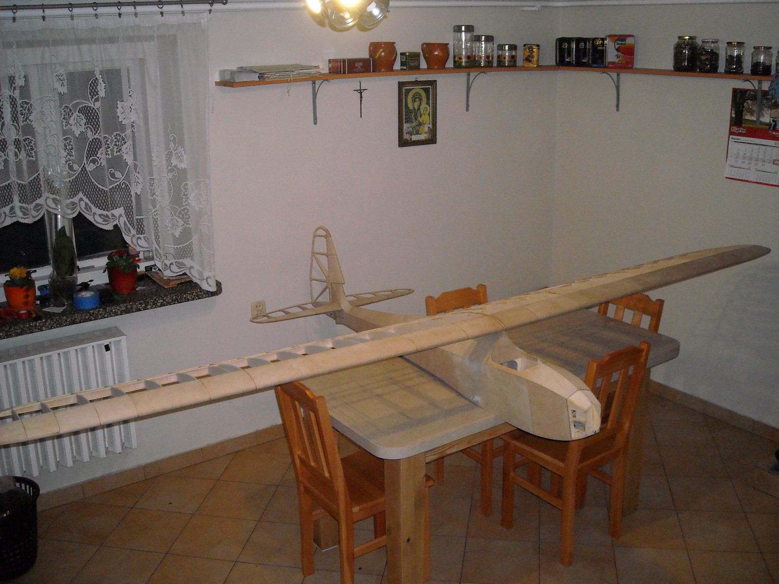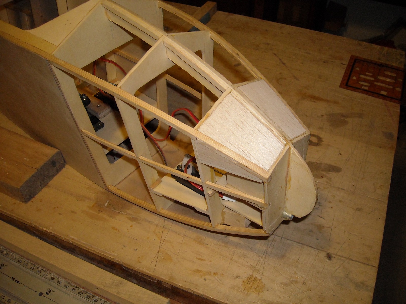 W części dziobowej wkleiłem balsowe wypełnienia , zamknięta przestrzeń będzie służyć za komorę balastową w razie konieczności doważenia gotowego szybowca .