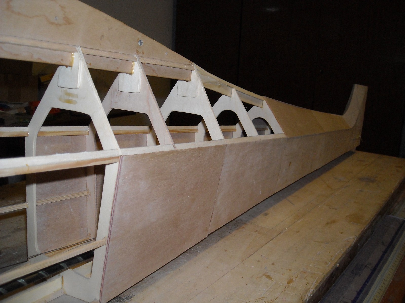 Najpierw kadłub i usterzenie - tu widać różnicę w kolorze sklejki