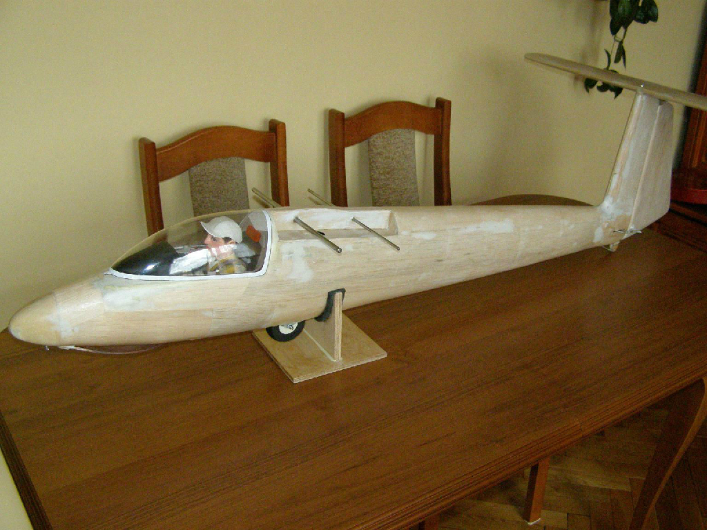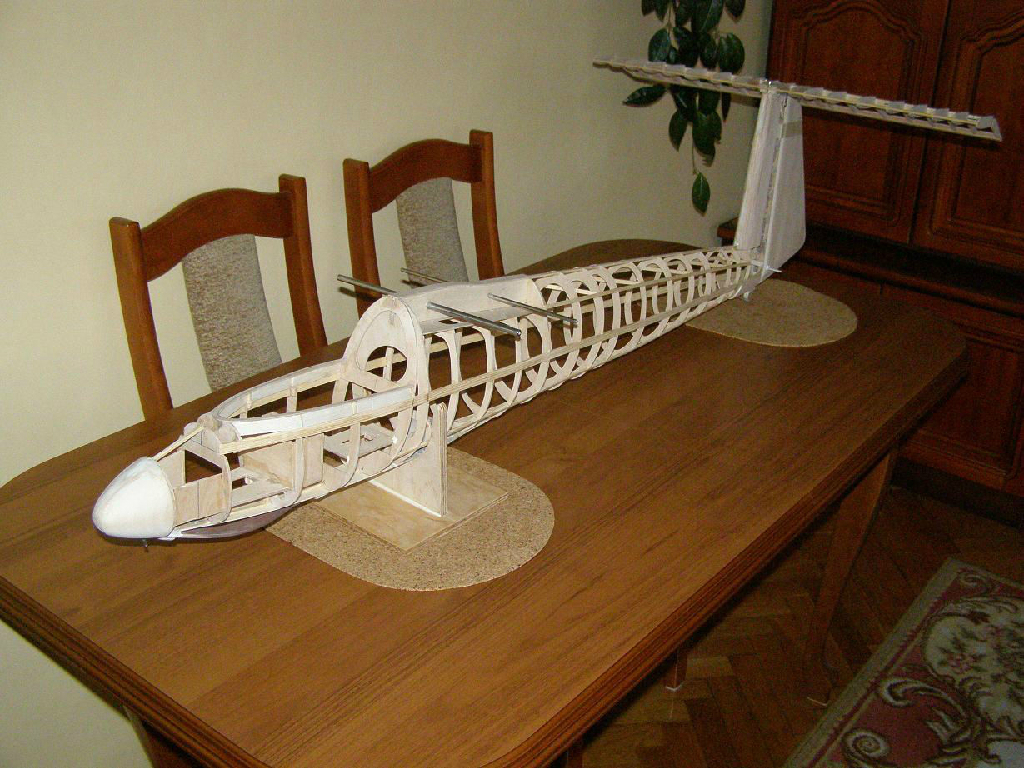 Ten zestaw to chyba o rozpiętości około 2 metrów ;) . 1:5 to już 3 metry. Robi się z tego kawał modelu. W pierwszej wersji chciałem zrobić kadłub laminatowy. Wykonałem dwie formy. Pamiętam ,że poniosłem ogromne koszty na materiały i nic z tego nie wyszło. Laminat poszedł do śmieci :evil: . Mocno zniechęciłem się wtedy do tego modelu. Po roku jednak wróciłem do budowy ale już metodą sprawdzoną. Kadłub wykonałem w wersji klasycznej pokryty balsą :) .