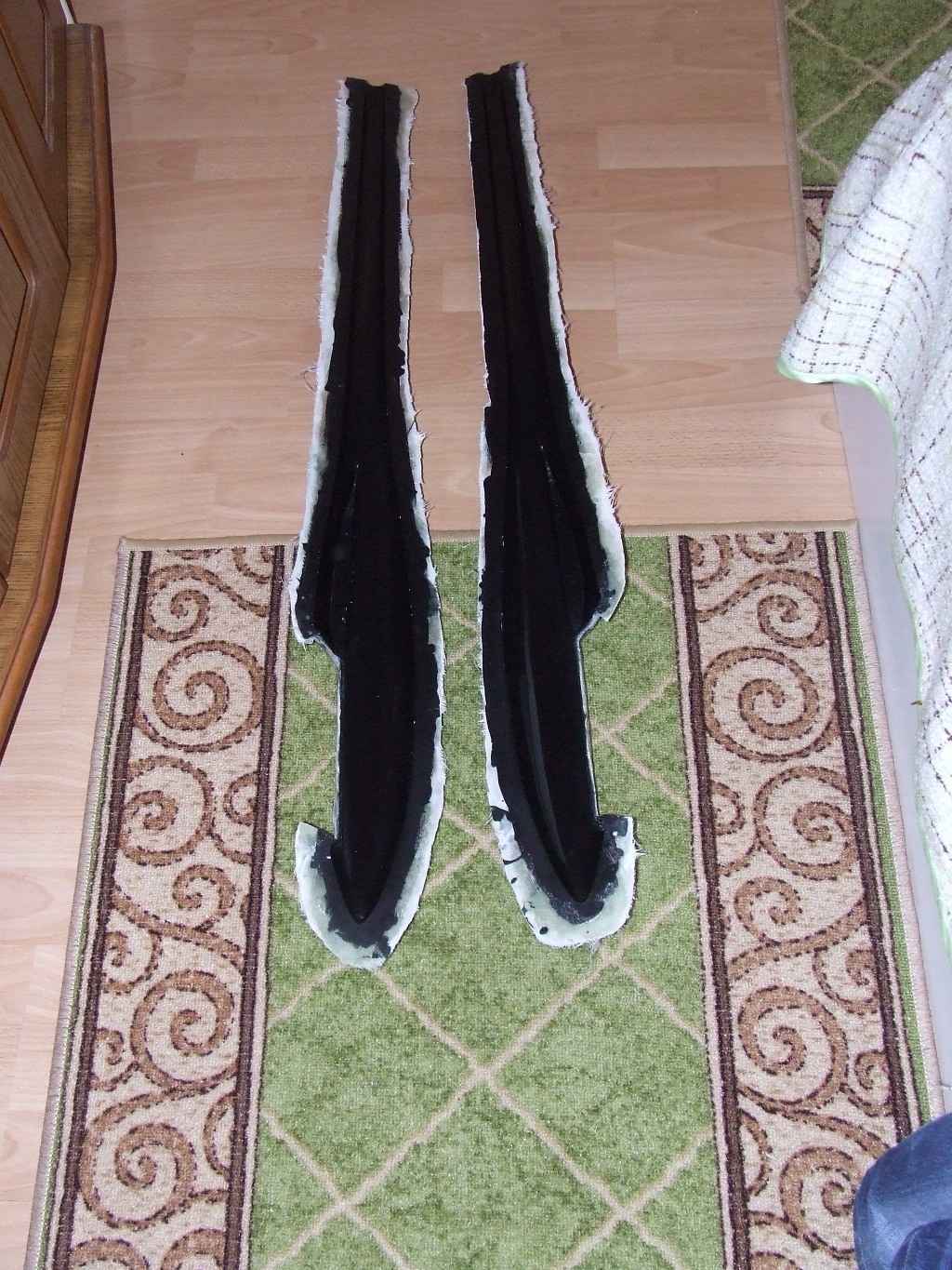 Na gorąco - próbuję zaformować to kopyto. Milo się napracował i mimo przeciwności losu kopytko wygląda ładnie. Niestety nie uniknęliśmy kichy. Pomijam tutaj materiał z którego wykonane jest kopyto bo cały czas jestem optymistą w tym względzie patrząc na Cobrę2. Chodzi bardziej o sam sposób budowy z dwóch połówek przy tym materiale - zapewne w przypadku sklejki problem byłby mniejszy choć pewnie by wystąpił. O co chodzi - łączenie połówek nie jest ostre - brzegi połówek są półokrągłe. po złożeniu tego do kupy środkiem idzie szczelina - pół biedy, bo przy łączeniu połówek można ją wypełnić, chodzi o to, że krawędzie są okrągłe - przy zrobieniu z tego form powstanie w tym miejscu schodek do wewnątrz który utrudni wyjęcie kopyt z formy. Próbuję oczywiście na desce doprowadzić to do prostego, jednak z efektem może być różnie. zobaczymy. Zastanawiam się, czy gdyby milo skorzystał z mojej sugestii, aby nakleić na połówki styczne taśmę pakową spiąć razem połówki i szczelinę zaszpachlować na równo, obrobić, następnie rozdzielić połowki rozwiązało by problem. Bardzo możliwe. W każdym razie nie wydaje mi się, abym robił jeszcze formę tą metodą. Zobaczymy jak pójdzie z całym kopytem w Cobrze. Później wrzucę jakieś zdjęcie.