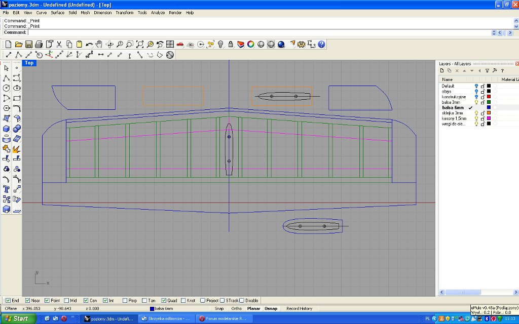 Taka tam rozpiska poziomego - szkielet z balsy 3mm, poprzeczki szerokość 4mm. Na to kesoniki i nakładki o szerokości 6mm. Boki doklejone z balsy 6mm. Spróbuję odciążyć ster otworami.