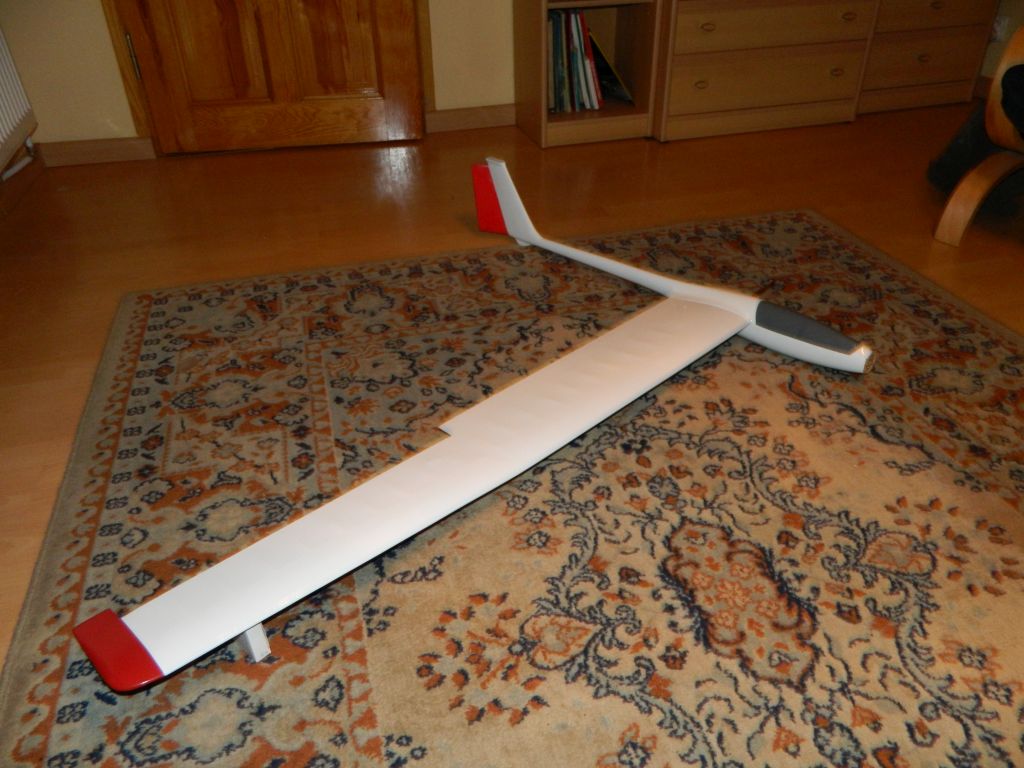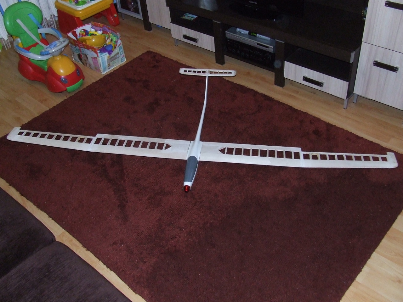 Wprowadziłem modyfikację szybowca pod kątem wyjazdu forumowego w Bieszczady - pojawił się napęd. Jakby co - forma leży w piwnicy to będzie można klasycznego szybowca zrobić :) Zrobiłem dwie fotki - proszę się nie przejmować otoczeniem aczkolwiek usprawiedliwia ono modelarską przerwę :) kurz pod szafkami, to niestety efekt prac w domu - żona mnie zamorduje :) Acha - wydłużyłem połówkę skrzydła o 10cm w stosunku do pierwotnego projektu płata B.