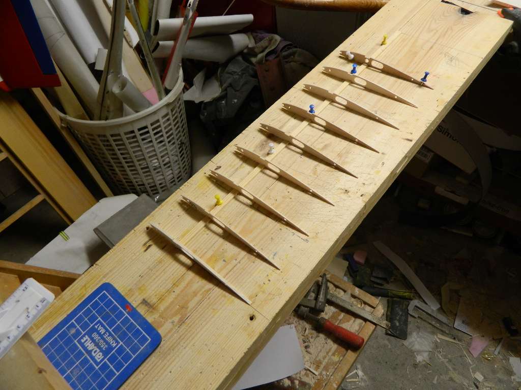 W opisie budowy skrzydel pominę etap wykonania zeberek dla części prostokątnej, w bloczku.....jest opisywane wszędzie wielokrotnie, dodatkowo opisalem to, wydaje mi się dokładnie, w "Elementarzu" w wątku "Budowa płata....itd". Będę się skupial na dokładnym opisaniu poszczególnych etapów skladania płata. Wszystkie szkice i szablony żeberek do części trapezowej będą dostępne, do ściągnięcia. Oczywiście liczę na wyrozumiałość i merytoryczne uwagi czytających.