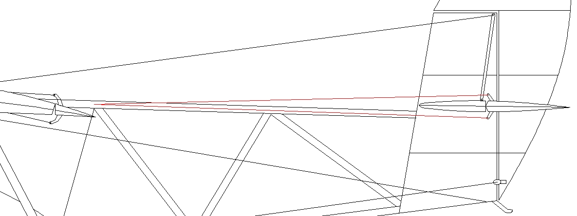 Po analizie zdjęć i rysunków, rozrysowałem płat z widoku z góry. Na szkicach nie był zaznaczony dźwigar - koniec kesonu - więc przyjąłem miejsce podczepienia zastrzałów jako miejsce gdzie był dźwigar. Na rysunkach jest to zwymiarowane. Rozstaw żeber wynosi 40 mm /skala 1:10/. Porównałem również obrysy profilu płata i profilu Goe 655 - tak mówi PKL. Załączam jpg z tym porównaniem / czerwona kreska Goe 655, czarna z mojego obrysowania/. Orczyki napędu lotek udało mi się narysować po dość wnikliwym oglądnięciu pod szkłem powiększającym zdjęć z PKL, niestety NN-2, na bisie nie widać, ale myślę, że nie różniły się