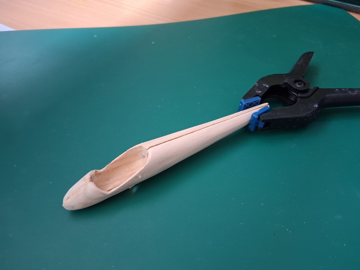 Przed rozklejeniem kadłuba wykonałem kabinkę używając opalarki.