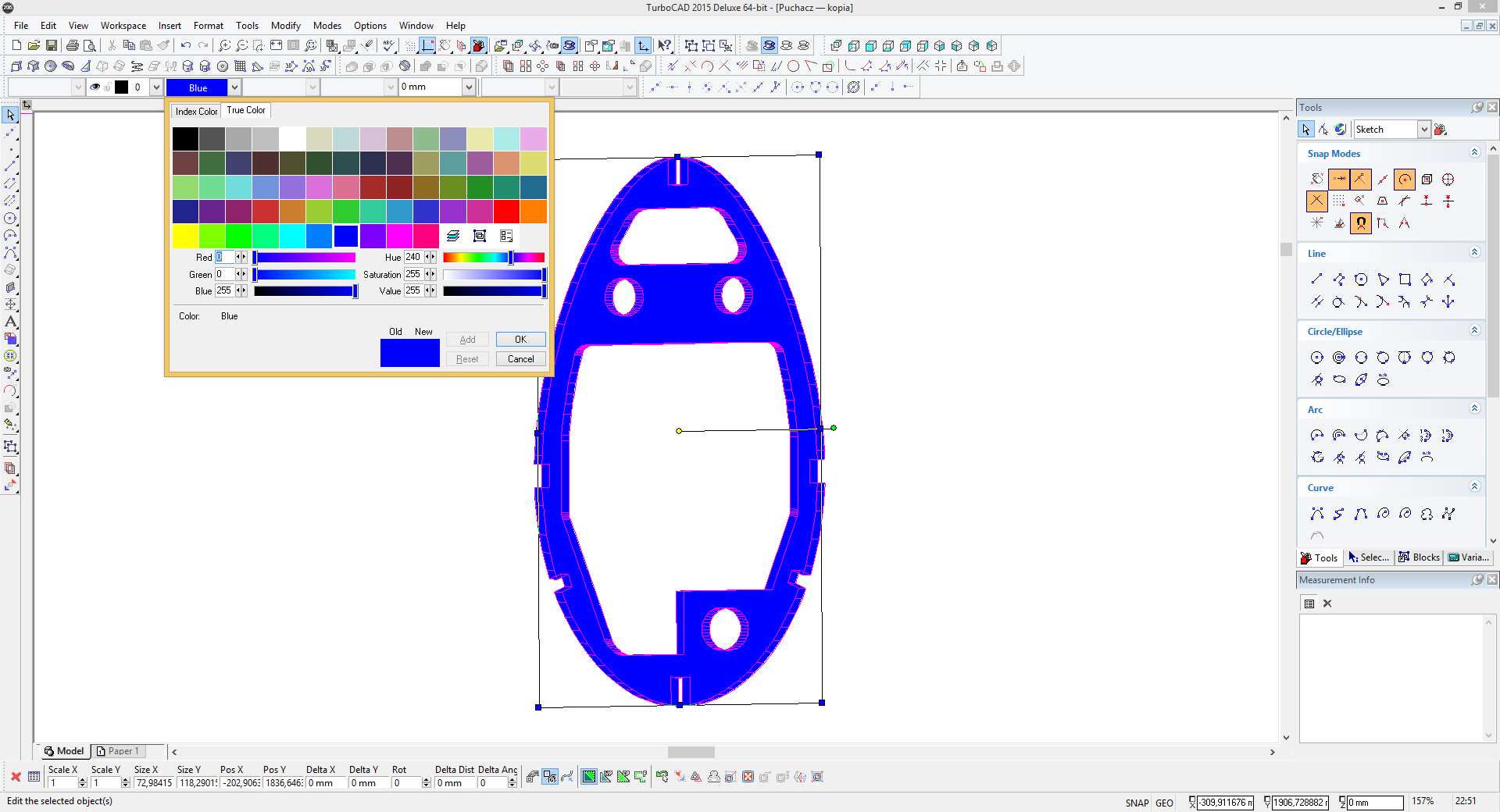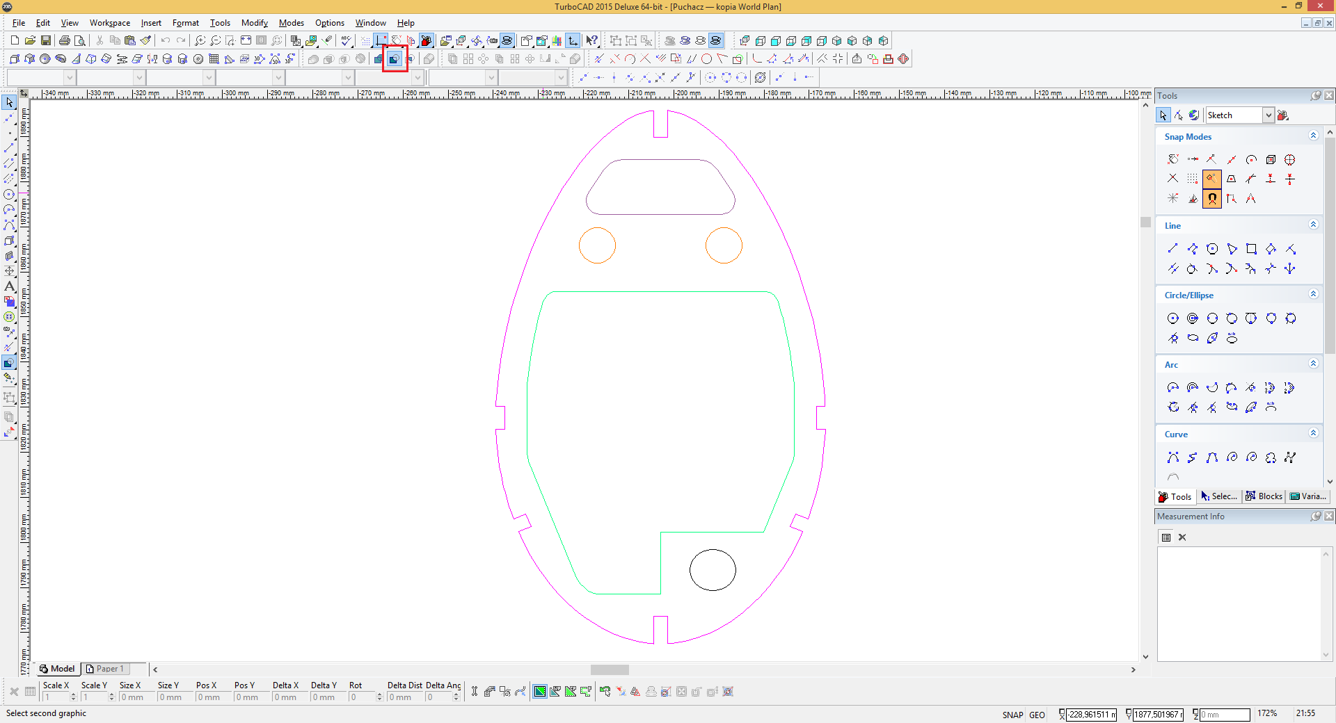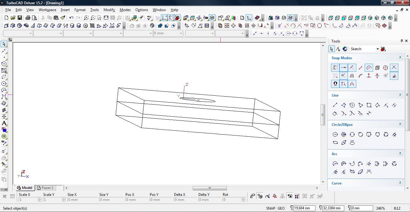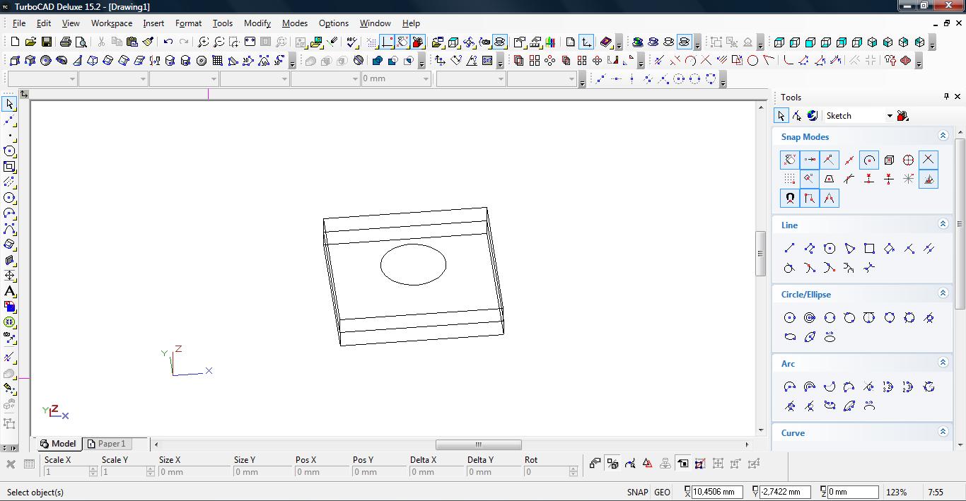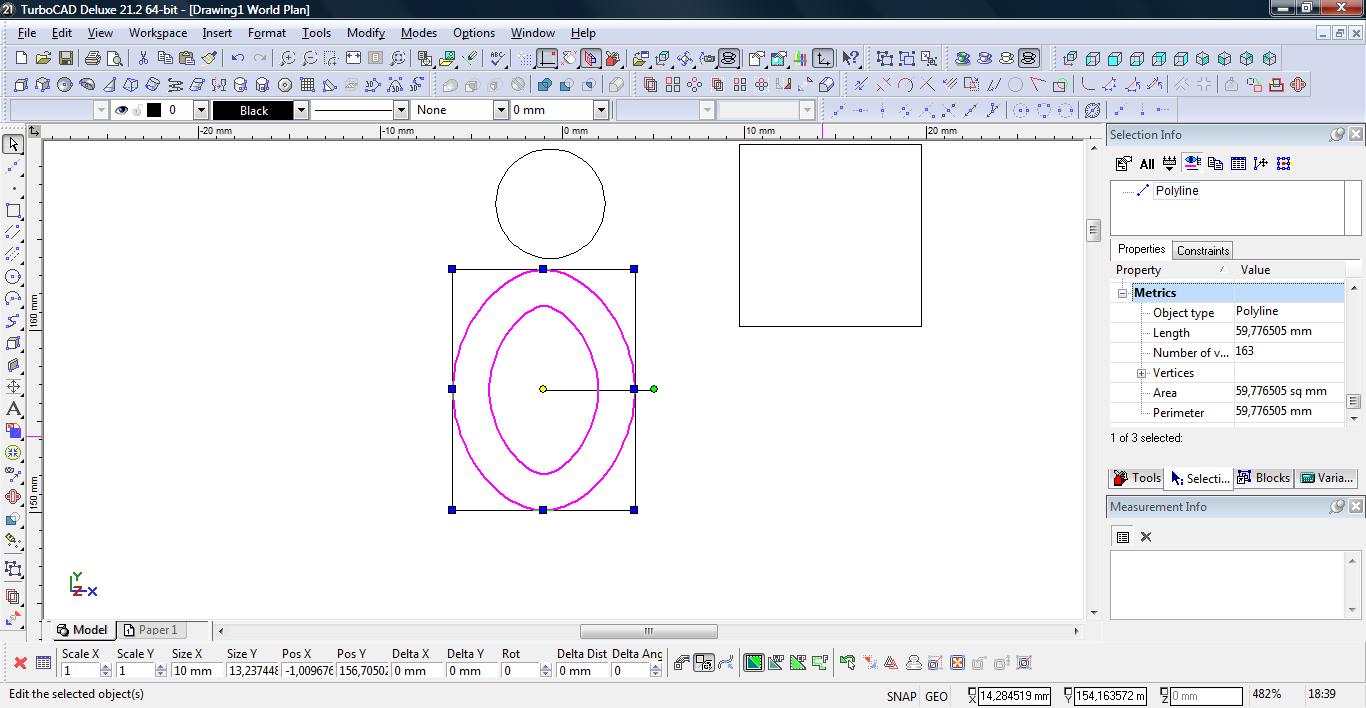 Używając funkcji Simple Extrude, TurboCad tworzy nowy obiekt na podstawie naszego i poddaje go modyfikacji.