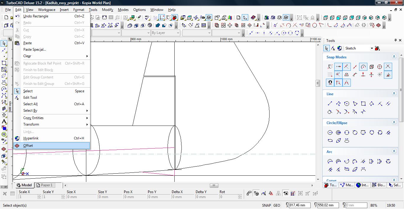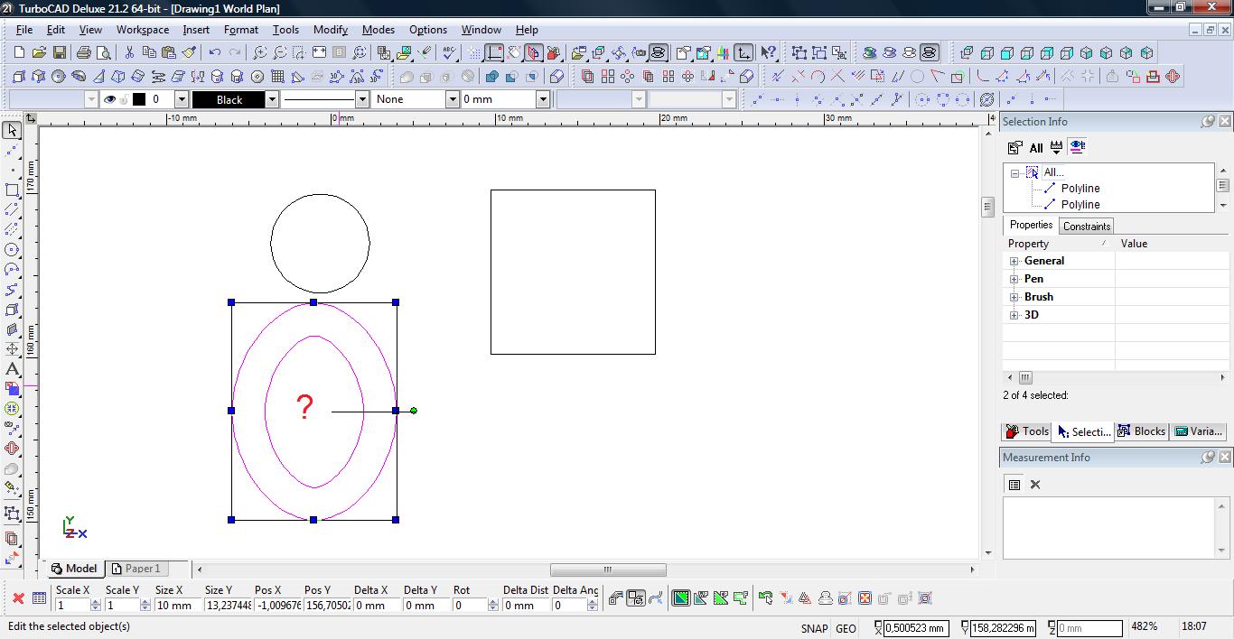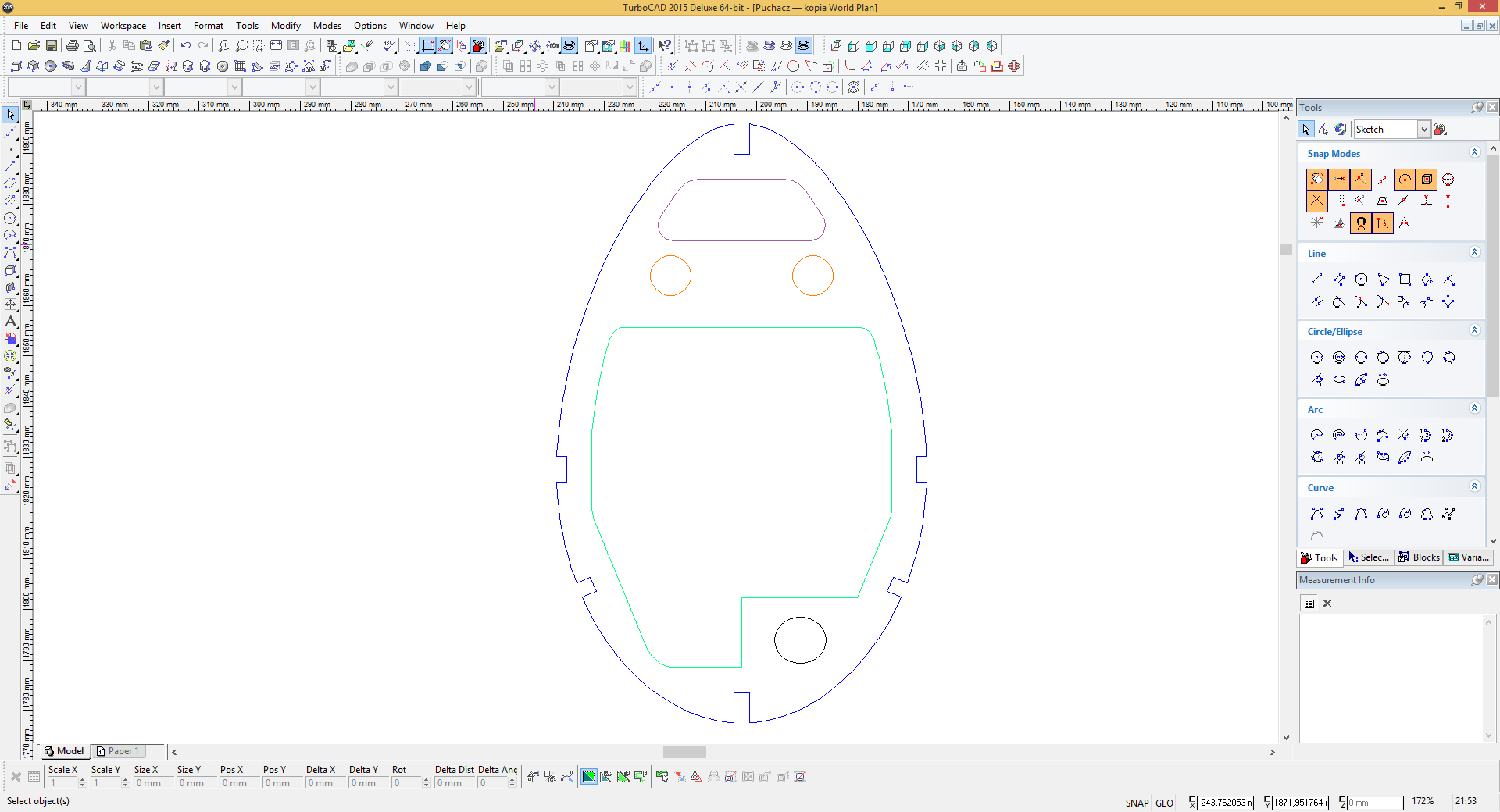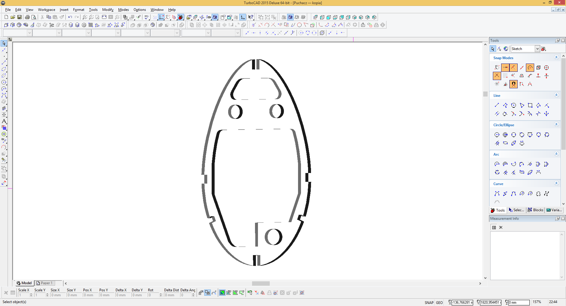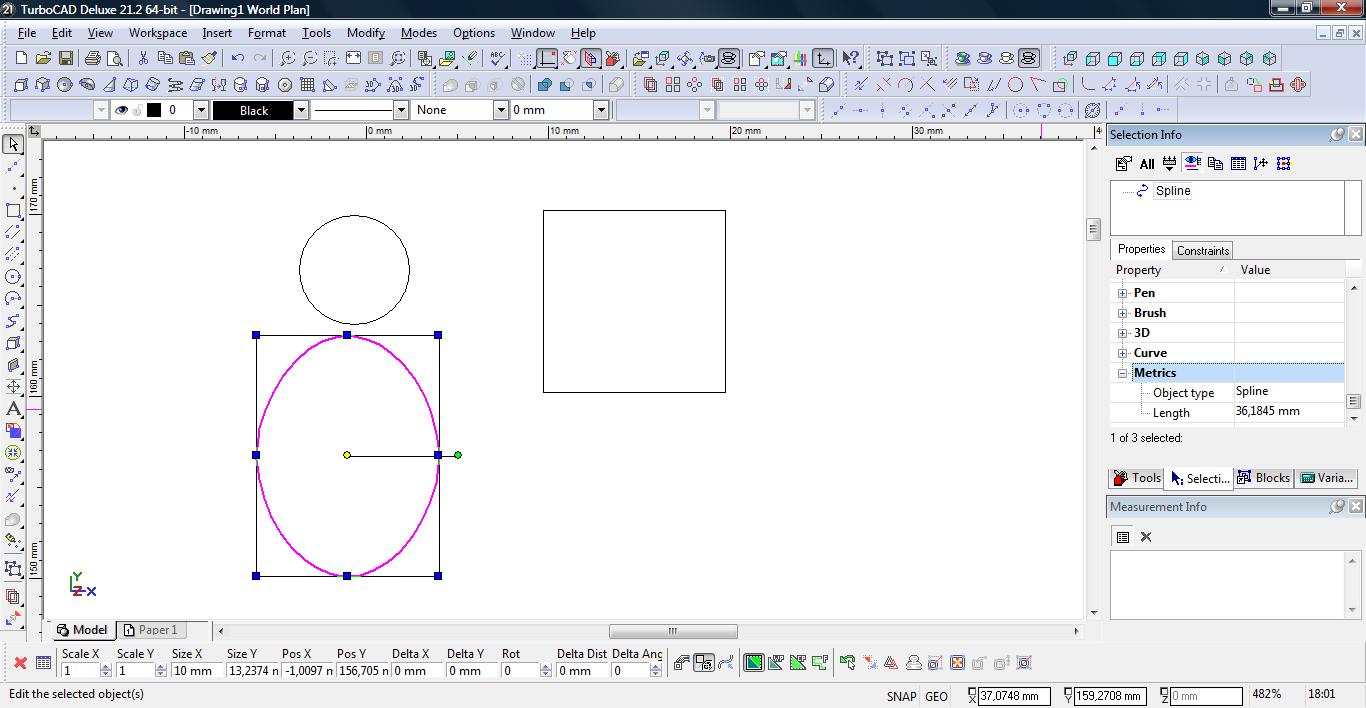 Używając funkcji Simple Extrude, TurboCad tworzy nowy obiekt na podstawie naszego i poddaje go modyfikacji.