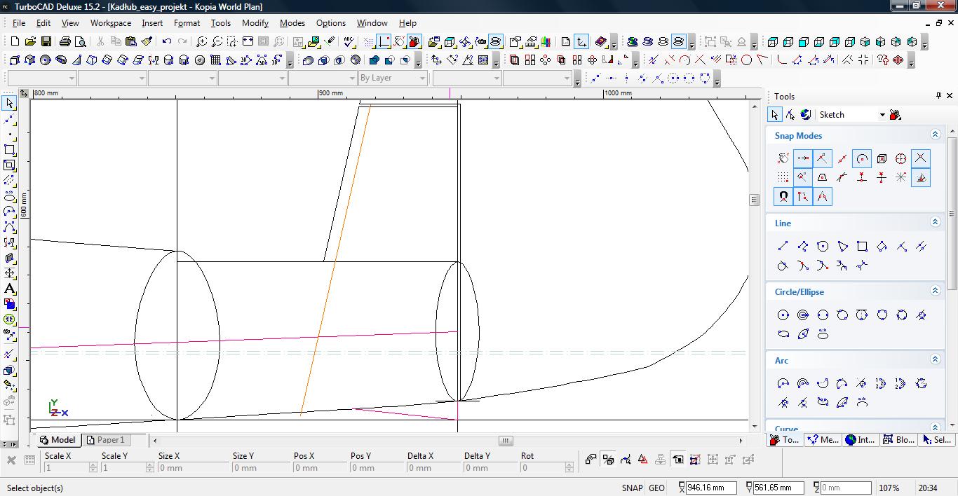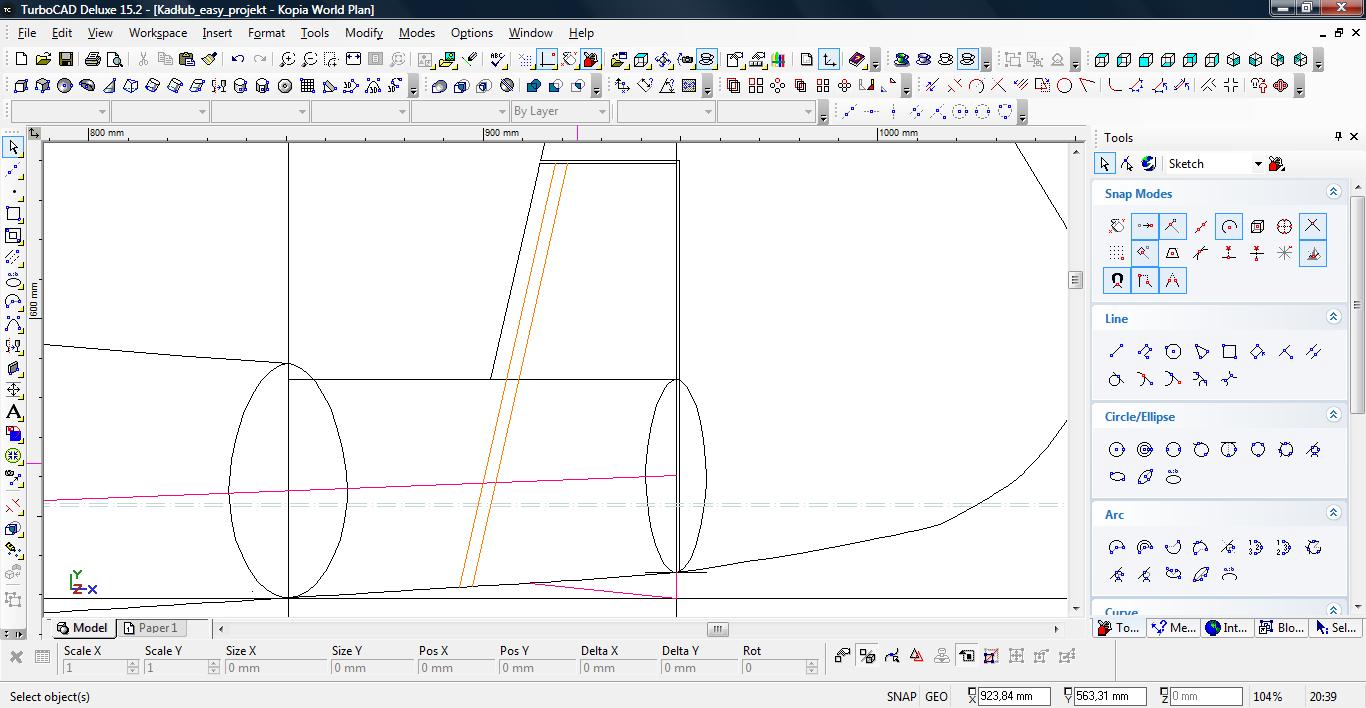 Czyli de facto tworzy nam kopię. Widać to na screenie poniżej. Cały czas mamy naszą polylinię oraz obiekt 3D – wyciągnięta kopia.