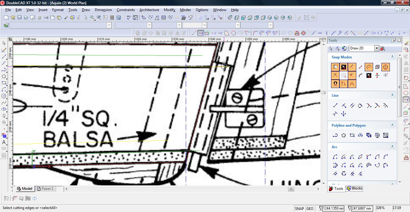 Następnie przedłużamy nasze linie używając narzędzia ‘Line Length’ (Modify->Line Length).