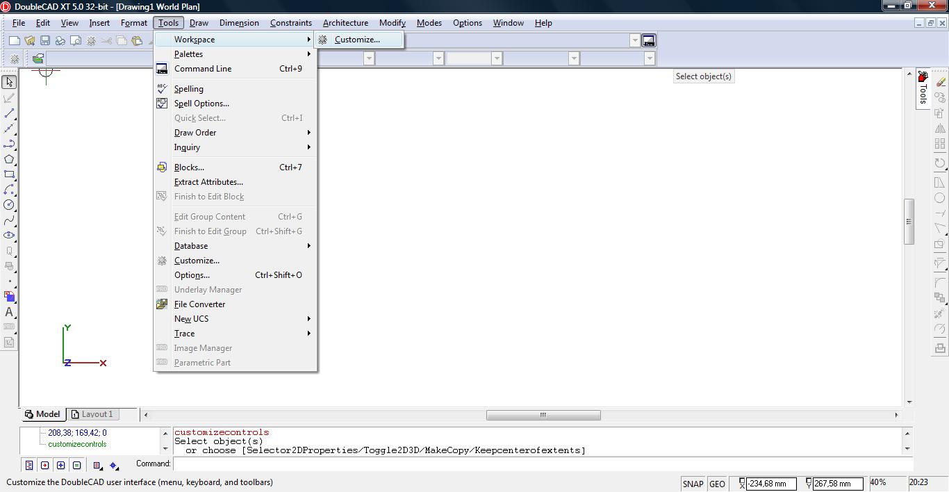 Ja zrobię to tak jak mam w TC. Wybieramy Tools-> Workspace->Customize