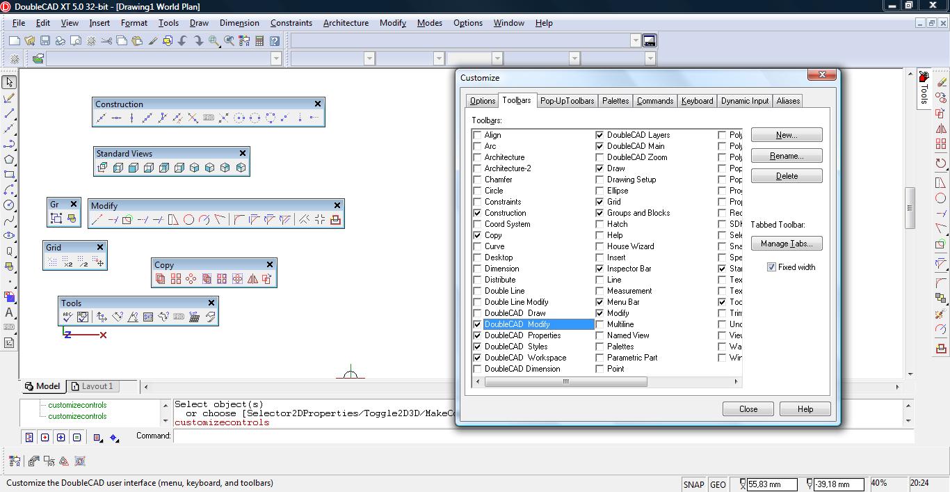 DoubleCAD (DC) jest bardzo zbliżony do TurboCAD-a (TC).