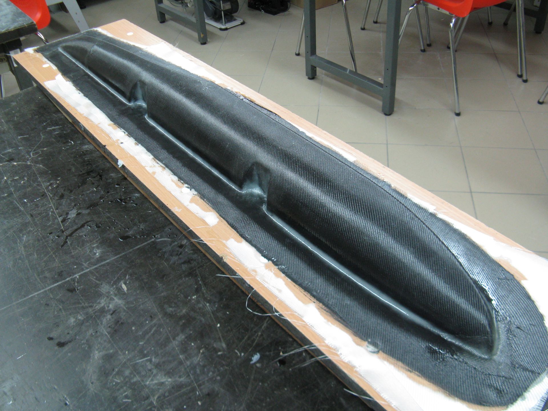 Aby laminat był mocny i nie rozwarstwiał się, nakładam tkaninę na żelkot, kiedy ten jest już zżelowany, ale jeszcze nie utwardzony. W praktyce to jest ok. godziny do dwóch (żelkot epoksydowy).